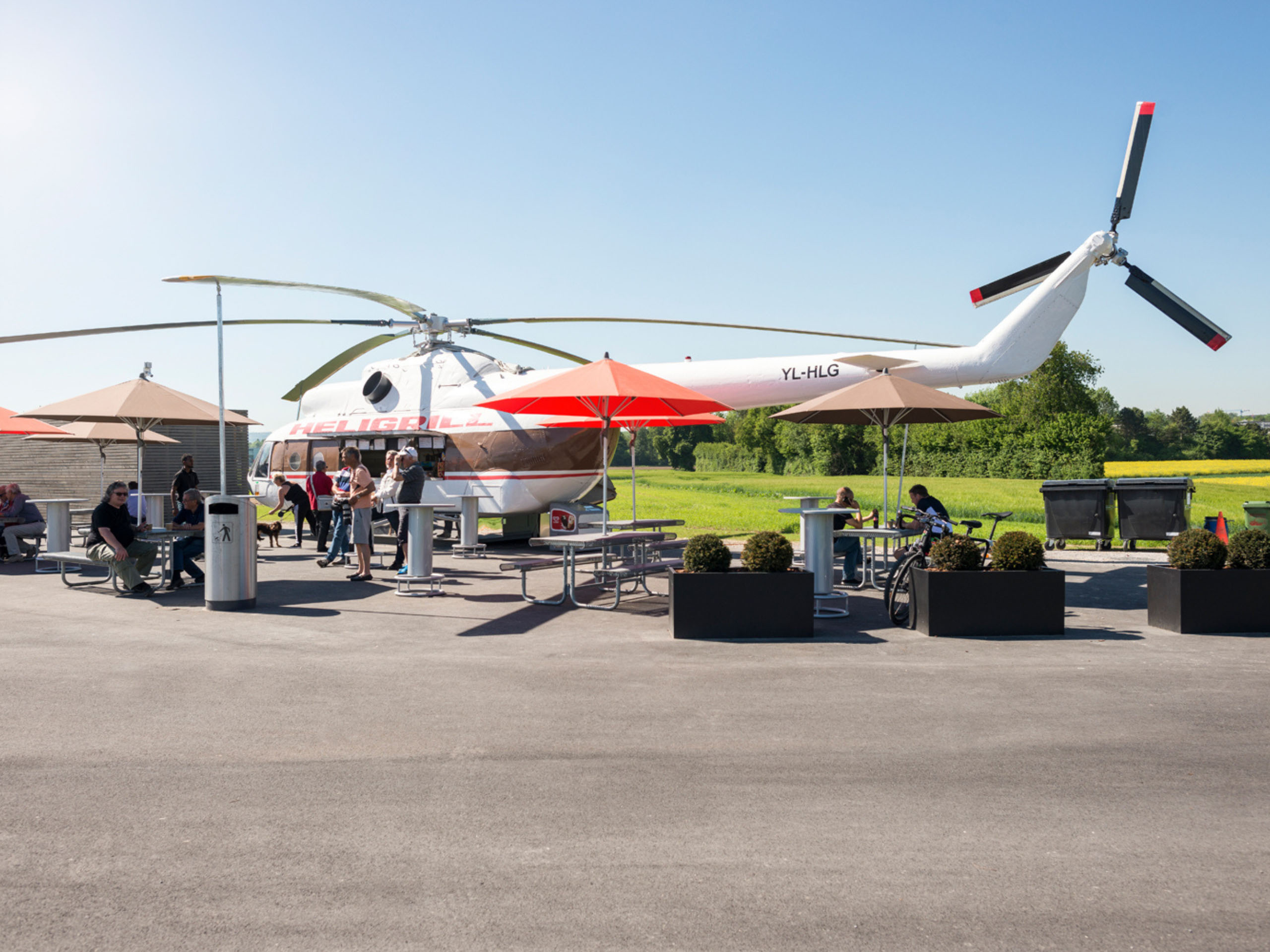 A new four-metre high viewing platform is opened to the west of the airport, with the "Heligrill" offering refreshments in a converted helicopter.