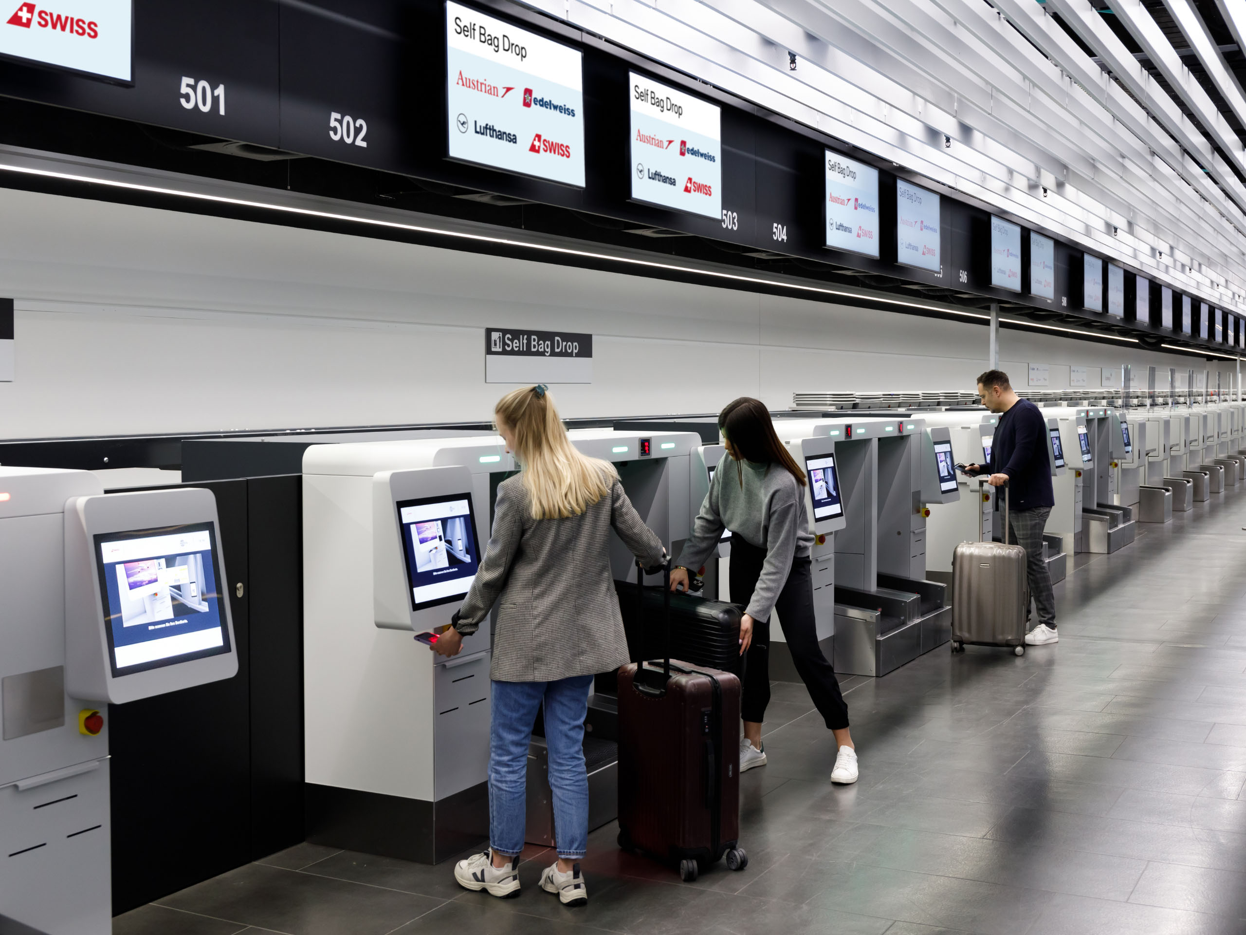 Lufthansa Group passengers who have already checked in online are given the option of dropping off their luggage at the self-service bag drop machines.