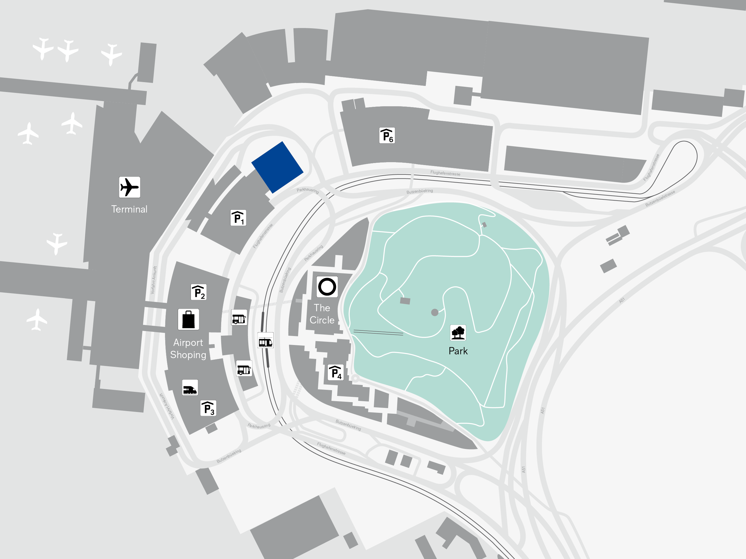 Als Teil des Radisson Blu Hotel befinden sich die exklusiven Geschäftsräume in nächster Nähe zu modernsten Übernachtungsmöglichkeiten, dem Airport Conference Center sowie einem Fitness Center.