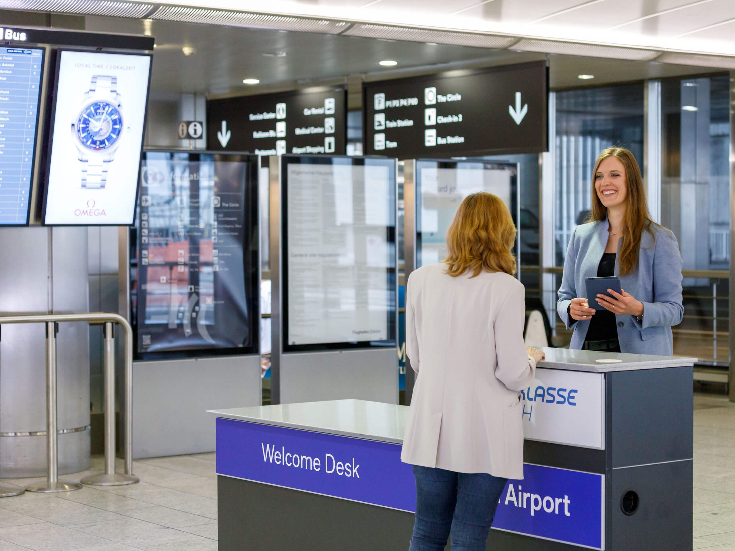 In der Ankunft 1, direkt gegenüber dem Zollausgang, bieten wir Ihnen die Möglichkeit, einen Welcome Desk für den Empfang Ihrer Gäste zu mieten. Sie können auf dem Welcome Desk Ihr Unternehmenslogo anbringen lassen, um es zu personalisieren. Kontaktieren Sie uns für weitere Informationen – wir beraten Sie gerne.