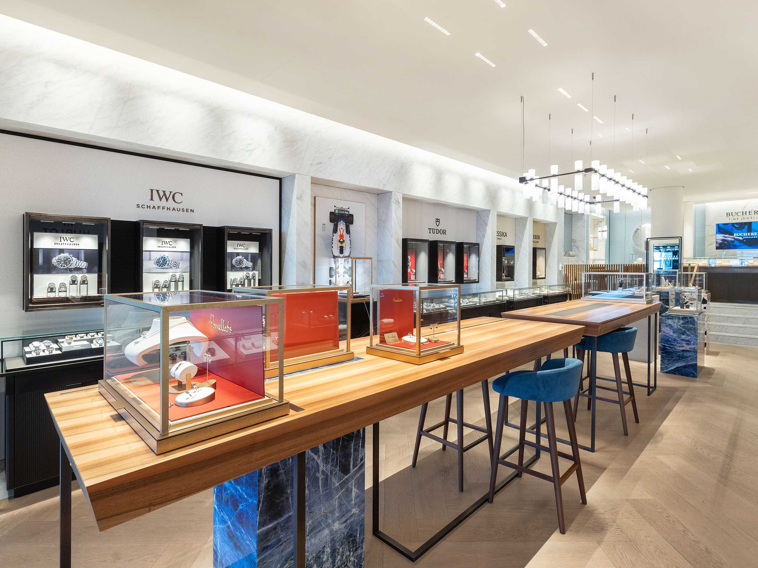 Am Flughafen Zürich zeigt Bucherer eine kuratierte Auswahl an Uhren von Breitling, Hublot, IWC, Panerai, Tudor und Bucherer Exclusives – ergänzt durch elegante Schmuckkreationen von Bucherer Fine Jewellery, Messika und Pomellato.