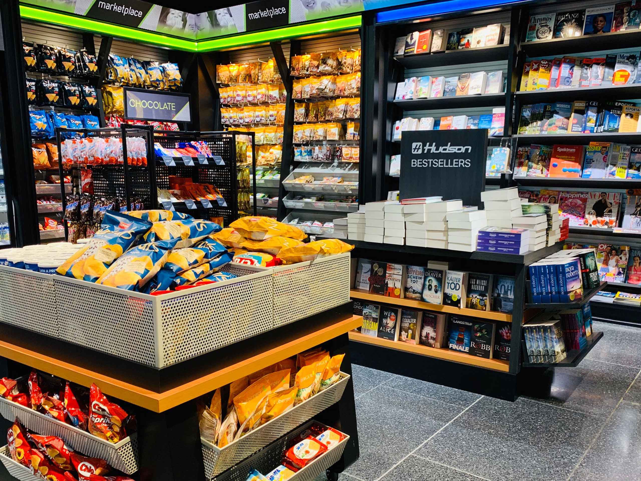 «The Traveler’s Best Friend» weiss, was Reisende brauchen: Hudson führt eine breite Auswahl an Kiosk- und Reiseutensilien wie Bücher, Zeitschriften, Souvenirs, Elektronikartikel sowie Getränke und Snacks.