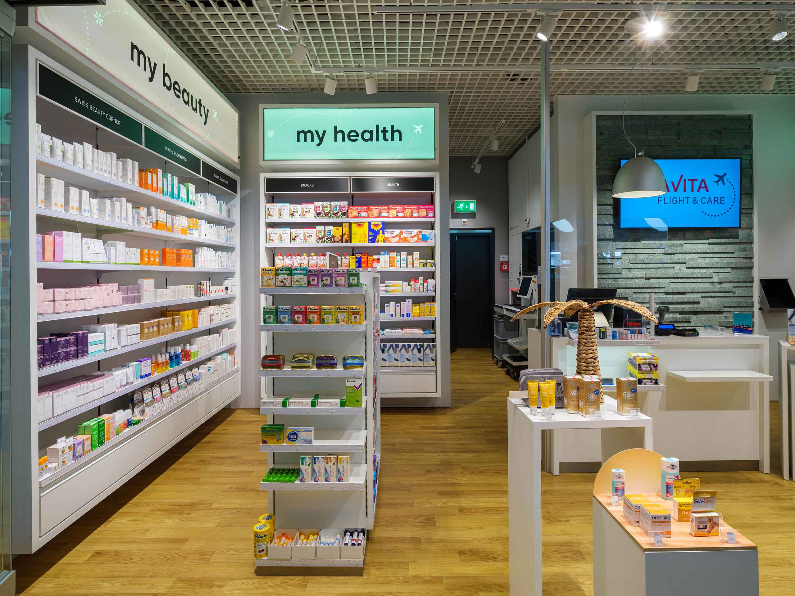 Amavita flight & care bietet im Check-in 2 alles was Sie für Ihre Gesundheit und Schönheit auf Ihrer Reise benötigen. Es erwartet Sie eine kompetente Fachberatung und ein umfassendes Angebot an Gesundheitsprodukten, Pflegeprodukten, praktische Reisegrössen & mehr.