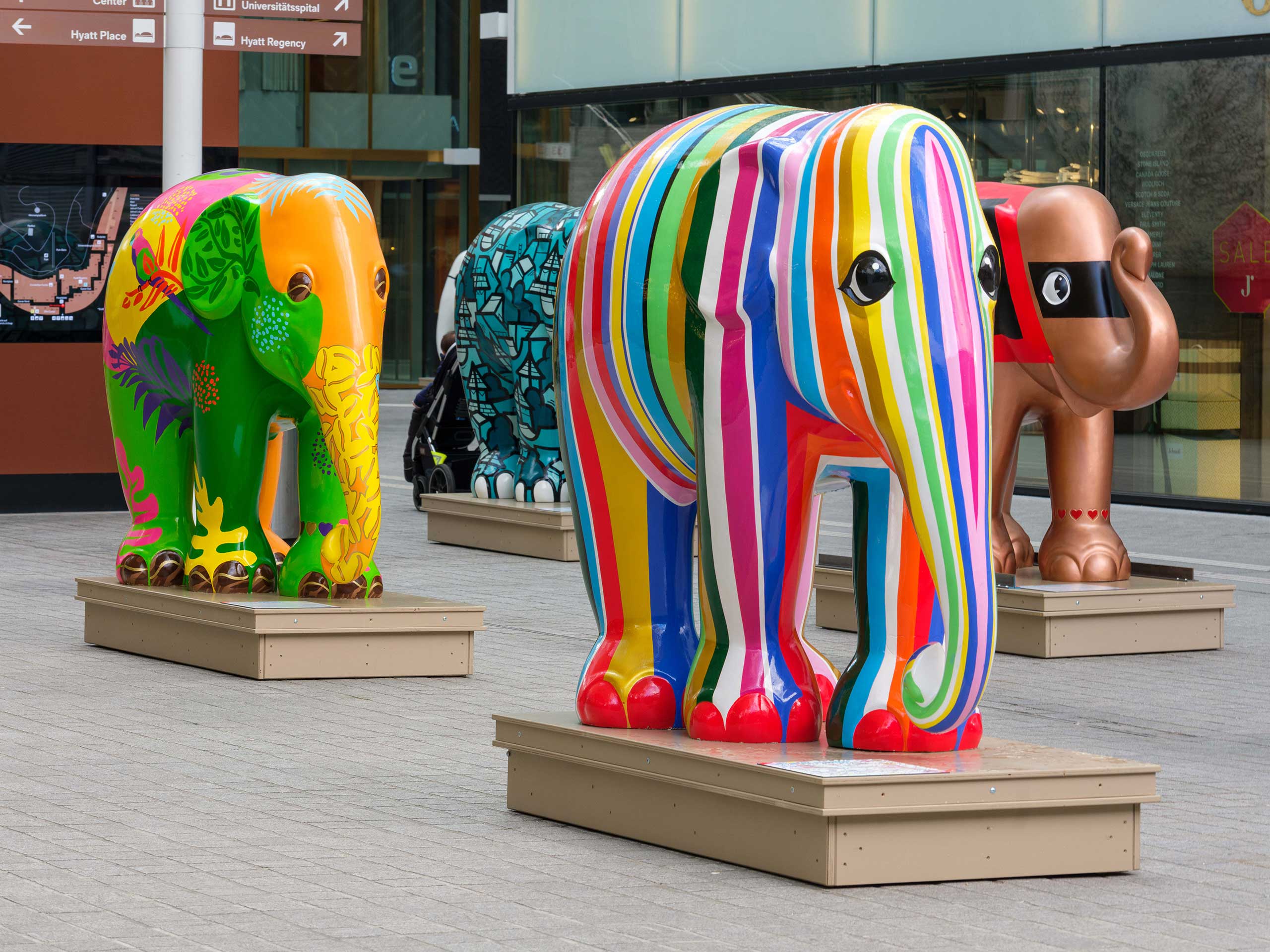 Entdecken Sie die bunten Elefanten im Airport Shopping & im Circle.