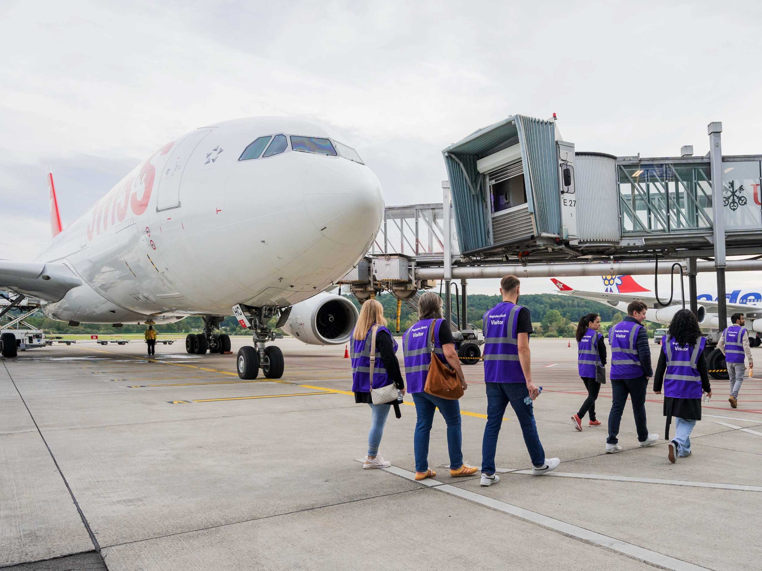Die Tour findet zu Fuss statt. Der Ablauf erfolgt individuell: zwischen den Docks A, B und E sowie auf dem Vorfeld der Docks. Die Schwerpunkte sind die Architektur und selbstverständlich die Flugzeuge.