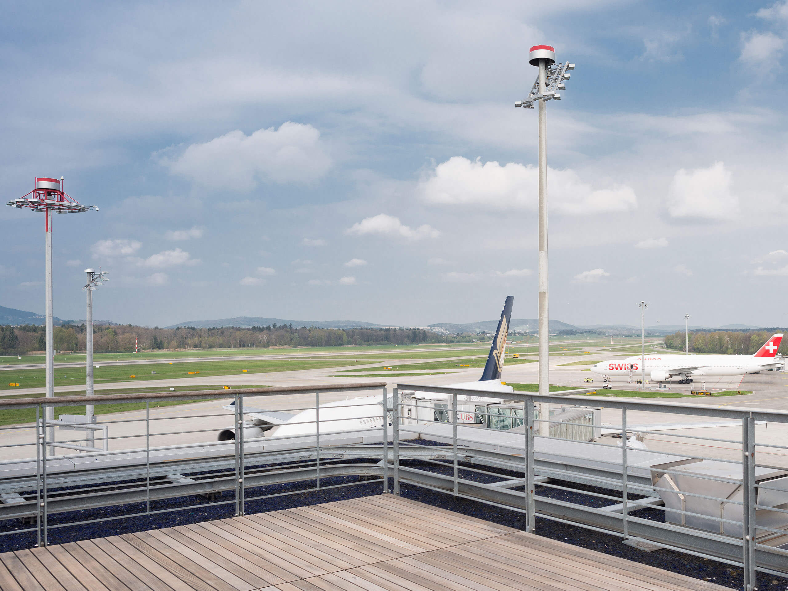 Vordefinierte Ansichten sorgen für tiefe Einblicke: Standplatz E62, Taxi Bravo, RWY 10/28, Tower, Rega etc.