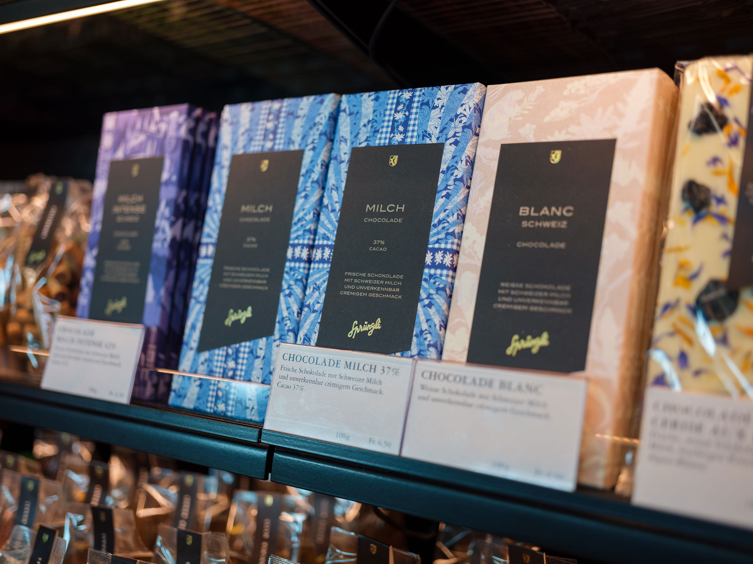 Raffinierte und luftig leichte Luxemburgerli, Pralinés und Truffes, die auf der Zunge zergehen – das Schweizer Familienunternehmen Confiserie Sprüngli, das seine Spezialitäten seit 1836 in Handarbeit herstellt, gehört zu den renommiertesten Confiserien Europas. Die einzigartigen Kreationen eignen sich auch ideal als Mitbringsel für Ihre Liebsten.