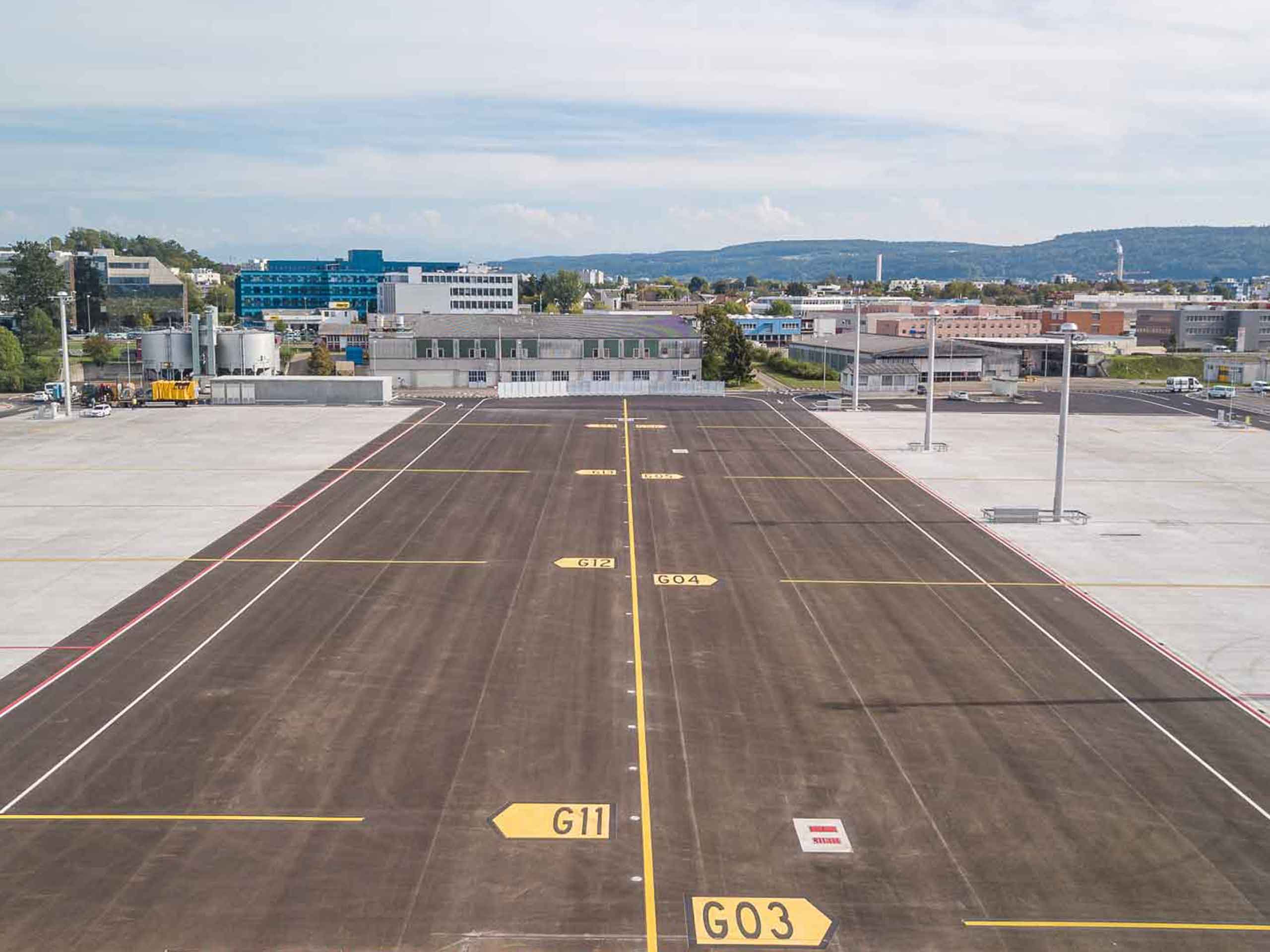 Mit dem vorliegenden Projekt „Stands Delta Süd“ wurden total 10 Standplätze für die Abfertigung von Code-C-Flugzeugen (Bsp. Europaflotte mit Bombardier C-Series, A320, B737) realisiert. Sämtliche Standplätze verfügen über eine Flugzeugenergieversorgung. Für die Standplatzerschliessung wurde der Rollweg Echo gegen Süden verlängert, wobei die Nutzung des verlängerten Rollwegs aufgrund seiner Breite nur Code C tauglich ist. Der neue Rollweg ist mit einer Centerline-Befeuerung ausgestattet, welche durch eine neue Trafostation versorgt wird. Die Hauptarbeiten für die neuen Standplätze erfolgten westlich der Werft 3.
