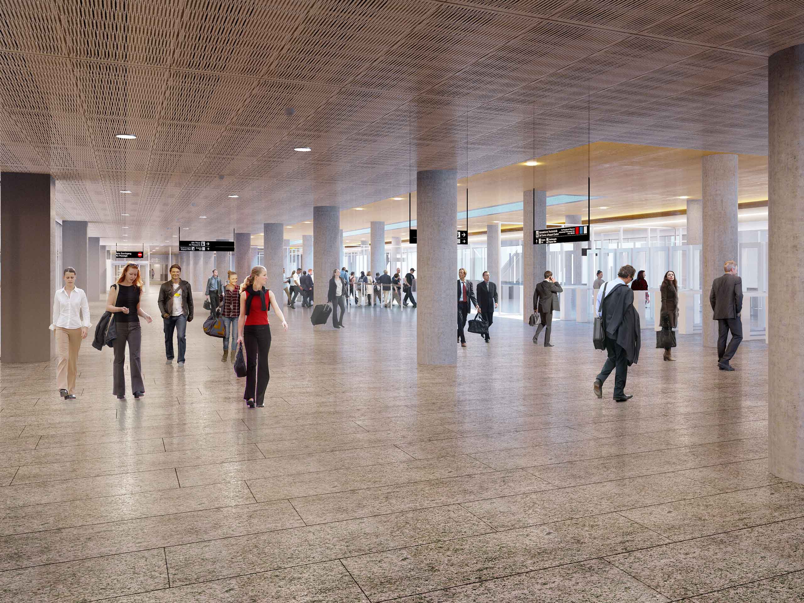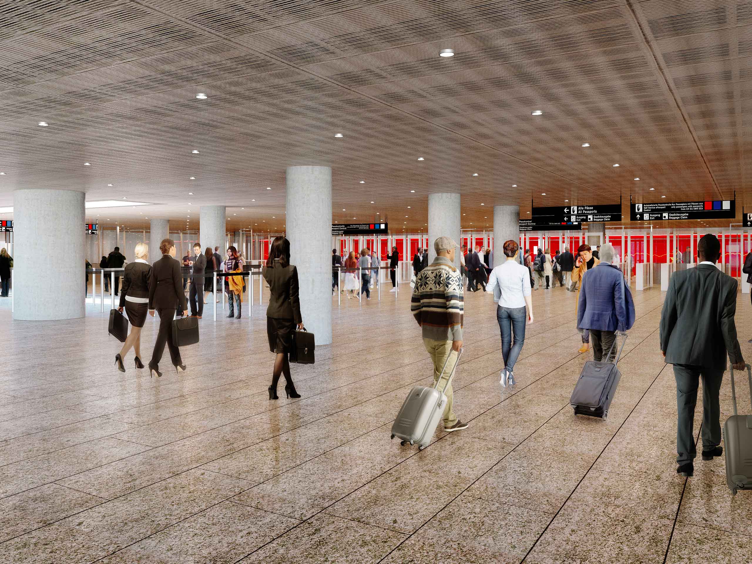 Neue gesetzliche Anforderungen für die Einreise in den Schengenraum führen zu einem erhöhten Platzbedarf in der Passkontrollhalle. Während der Tagesspitzen kommt es heute ausserdem immer wieder zu räumlichen Enpässen. Durch die Erweiterung können die Passagierströme klarer getrennt werden: Einreise, Ausreise und Transfereinreise erhalten eigene Bereiche. Gleichzeitig entsteht mehr Raum und Komfort für die Fluggäste sowie Platz für zusätzliche Grenzkontrollinien und E-Gates.