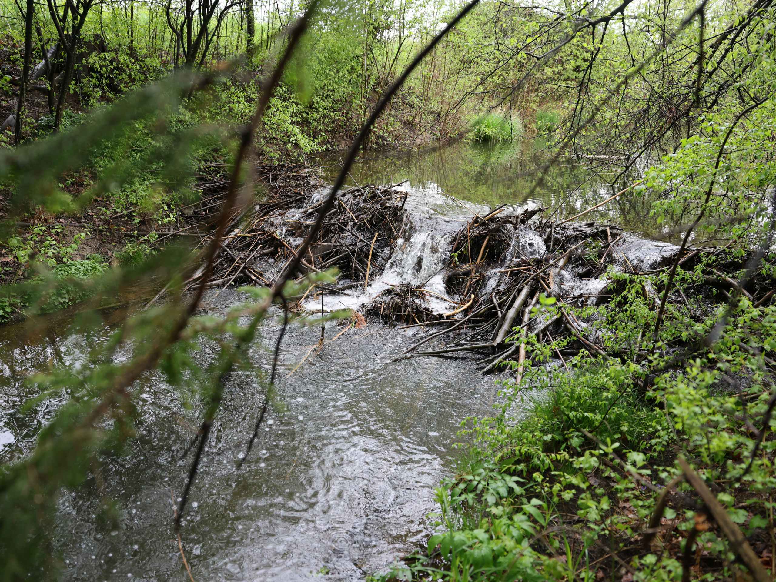 Der Biber fördert die biologische Vielfalt und ist deshalb wertvoll. Der Pflanzenfresser passt seinen Lebensraum an seine Bedürfnisse an, schafft mit seinen Dämmen Biotope und hebt den Grundwasserpegel an, wodurch sich Flora und Fauna verändern. Vom Totholz, das der Biber durch seine Fällaktivitäten schafft, profitieren Insekten, Amphibien und seltene, kleine Vogelarten wie der Eisvogel, die den Flugbetrieb nicht gefährden. Das Nagetier staut Wasser auf, damit es zu seinen Nahrungsstellen schwimmen kann und verlässt das Wasser nur in einem kleinen Radius zum Fressen. An verschiedenen Gewässern auf dem Flughafenareal sind seit einiger Zeit rund zwei bis drei Biberverbände ansässig. Damit der Biber das Wasser nicht zu hoch aufstaut, so dass der Flugbetrieb gestört und Betriebsflächen vernässt würden, haben die Wildhüter:innen zwei Dammdrainagen im Himmelbachkanal eingebaut. Durch diese Rohre kann immer etwas Wasser abfliessen. Oben ist ein Gitterkorb installiert, damit die Biber das Rohr nicht jeden Tag verstopfen können.