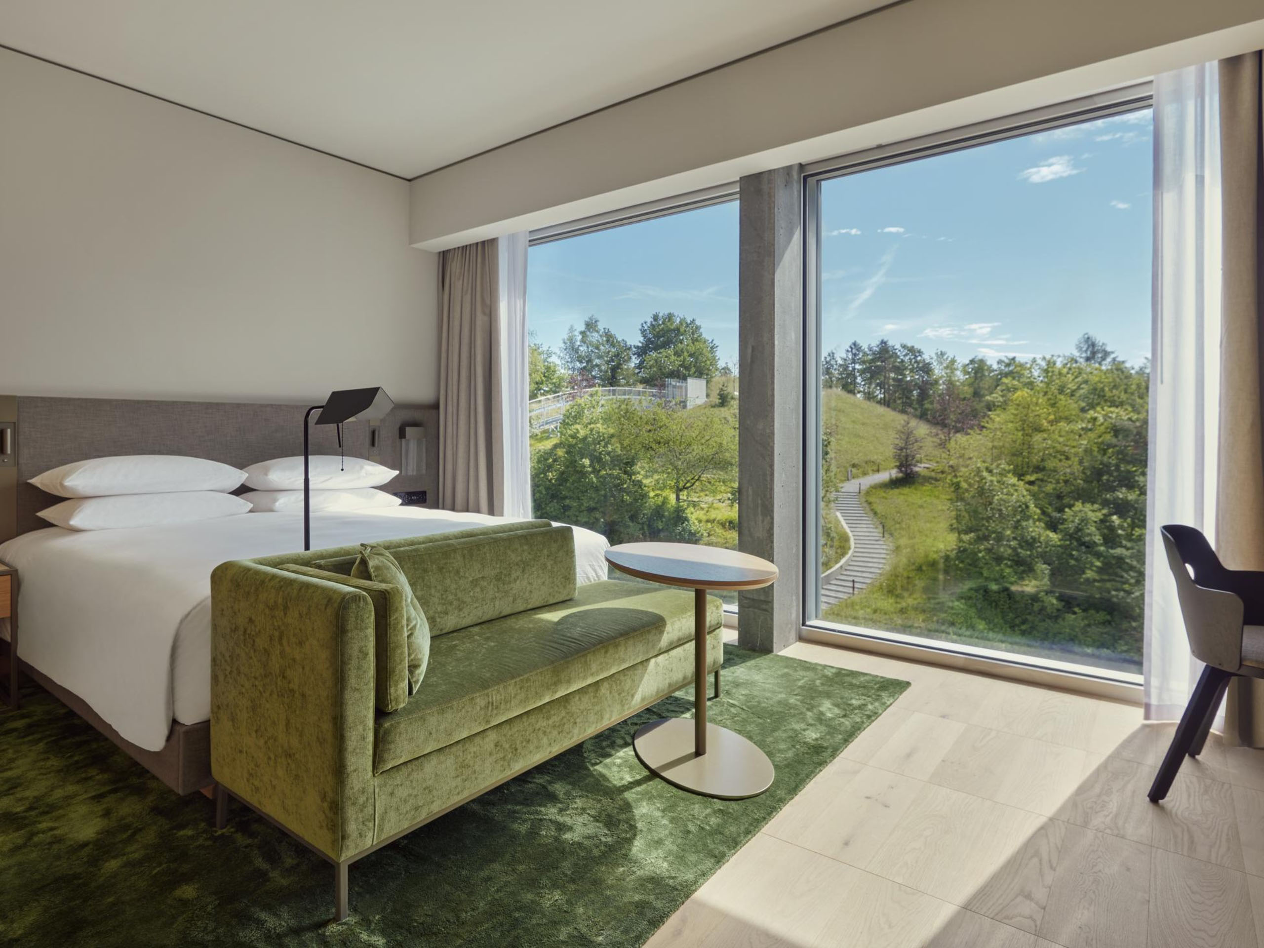 Für alle, die den Aufenthalt noch verlängern wollen: Das 4-Sterne-Superior-Hotel Hyatt Regency Zurich Airport The Circle verfügt über 255 Zimmer, darunter 16 Suiten. Für einen Schlummertrunk lohnt sich ein Abstecher in die hoteleigene Bar Iris, bevor du dich in deinem elegant eingerichteten Zimmer entspannen kannst.