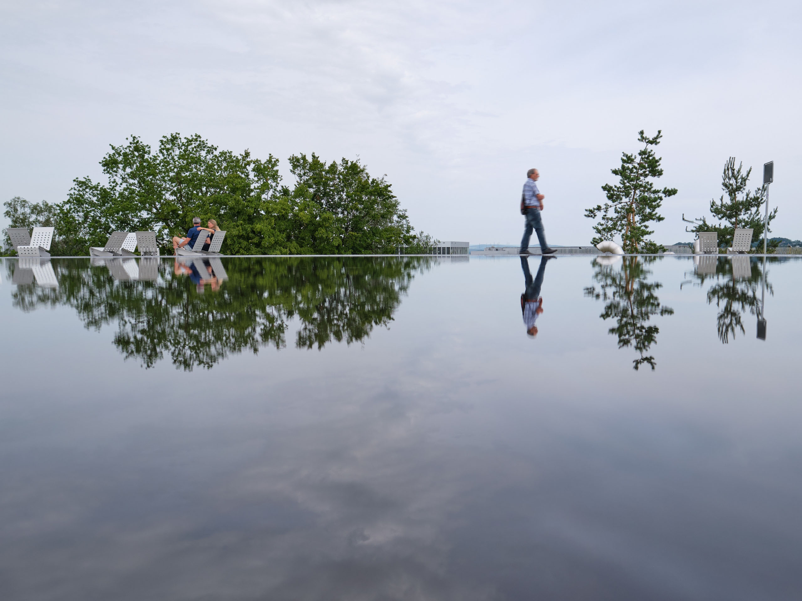 "Golden Hour" nennt sich die Zeitspanne kurz vor dem Sonnenuntergang – sie bietet sich prima für einen Abstecher in den Circle Park an. Mit der Standseilbahn oder zu Fuss erreichst du in wenigen Minuten den höchsten Punkt des Parks, die Himmelsplattform. Von dort aus kannst du bei klarer Sicht die Alpen bestaunen und für einen Moment die Welt um dich herum vergessen.