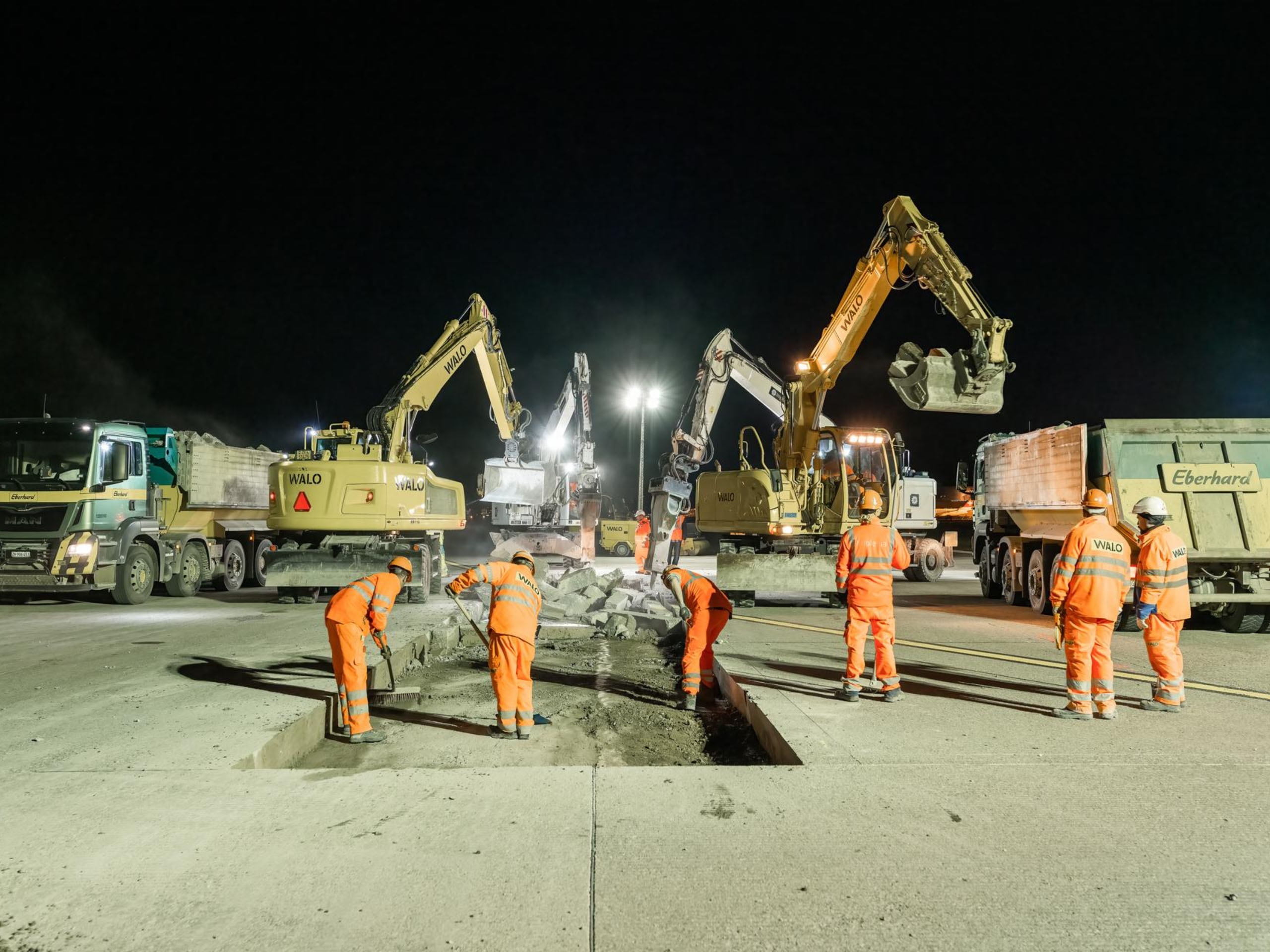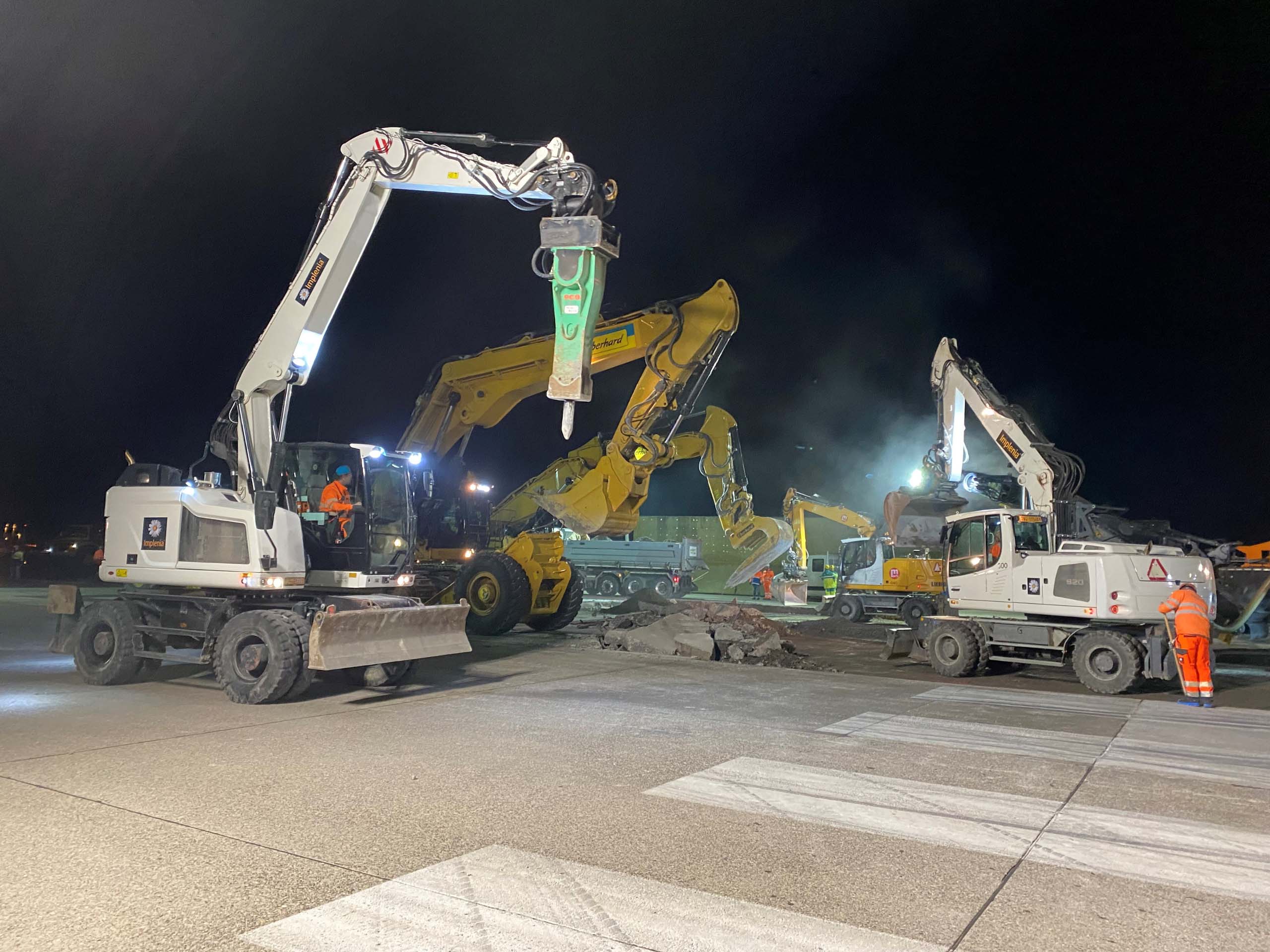 Im 2022 wurde die Piste 10/28 saniert: Der 2,5 km lange Mittelstreifen wurde komplett ersetzt. Die ausführenden Bauunternehmen arbeiteten unter grossem Zeitdruck: Sprichwörtlich über Nacht musste auf einem Abschnitt von rund 60 Metern der alte Beton rausgebrochen und der neue Asphaltbelag eingebaut werden, damit morgens ab 7 Uhr die Flugzeuge wieder planmässig abheben konnten.