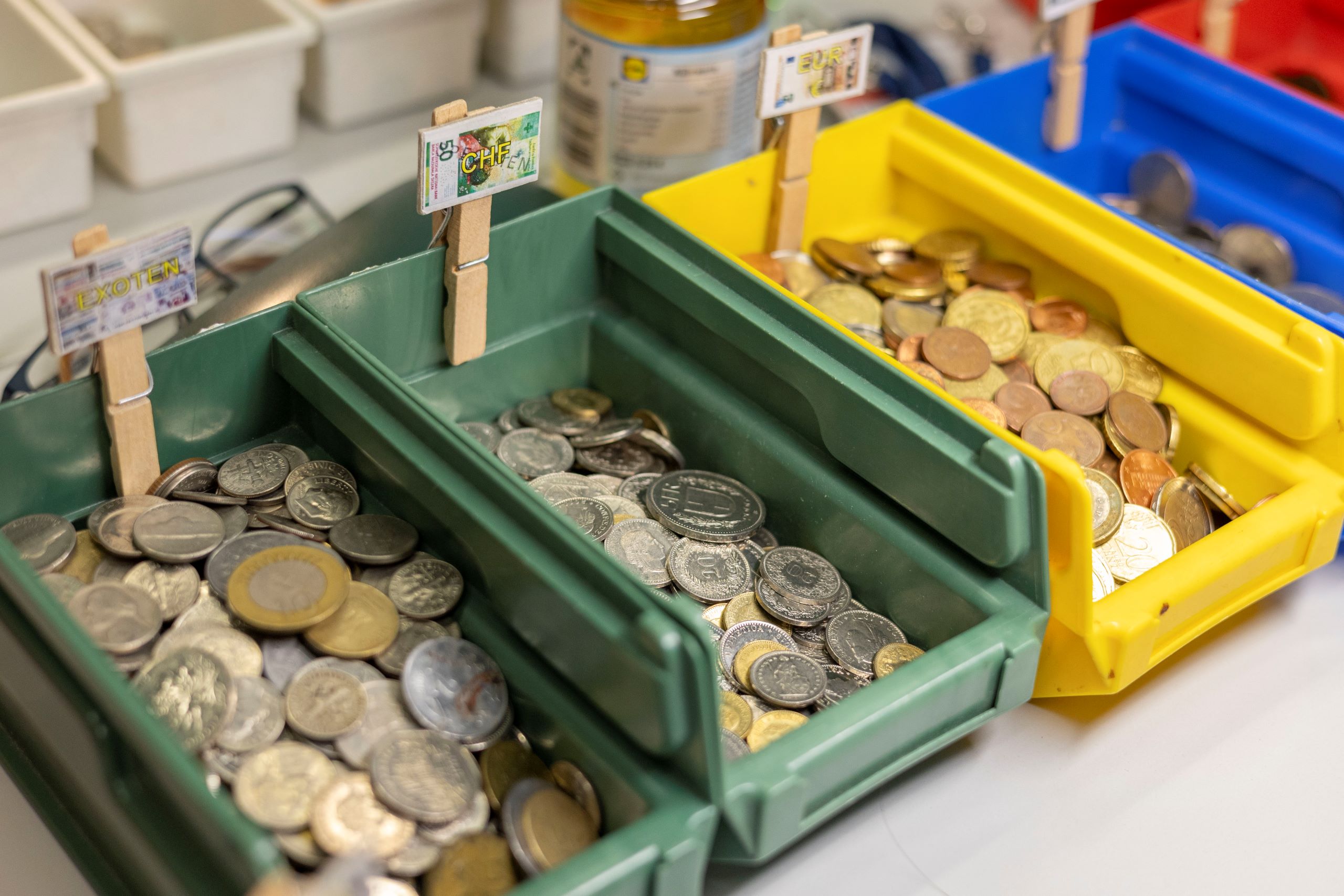 Ein Teil der Münzen wird nach Deutschland oder Bregenz zum Umtauschen gebracht. Schwieriger wird es bei exotischeren Münzen wie dem Yen, den kanadischen Dollars oder dem Thai Baht. Für diese hat sich das freiwillige Team ein Netzwerk aufgebaut, welches ihnen diese abkauft. «Die recht grosse Menge von Münzen mit extrem wenig Wert, wie US Cents, Canada Cents oder UK Pence verkaufen wir als Kilo-Ware an einen Sammler», so Laasner. Alle anderen Währungen gehen an eine Firma in Deutschland, welche ein- bis zweimal pro Jahr jeweils etwa 600 – 800 Kilogramm Münzen abholt und vergütet.