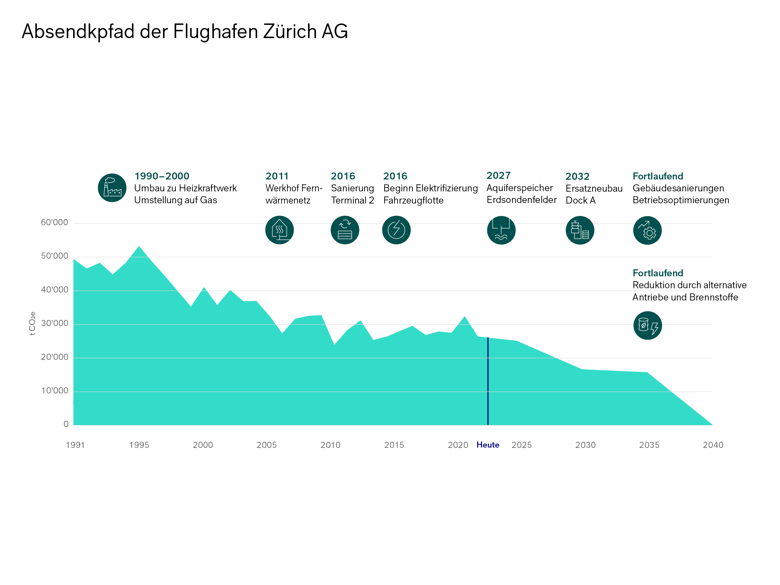 Unser Absenkpfad gibt mit konkreten Massnahmen den Weg zu netto null eigenen Treibhausgasemissionen bis 2040 vor.