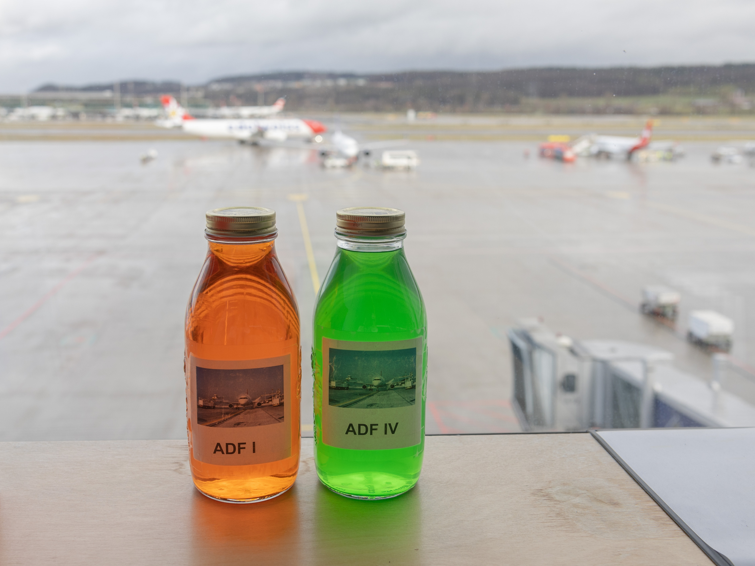 Am Flughafen Zürich kommen zwei verschiedene Enteisermittel zum Einsatz. Typ 1 ist orange und wird eingesetzt, um bestehenden Frost oder Schnee von den Flugzeugen zu entfernen. Das Mittel wird mit heissem Wasser gemischt und auf die Maschinen aufgesprüht. Typ 4 kommt kommt bei Niederschlag wie (Schnee-)Regen, Schnee oder gefrierendem Nebel zum Einsatz. Typ 4 ist grün, wird unverdünnt aufgetragen und dient als Imprägnierschicht. Die Neonfarbe erhalten die Mittel durch Lebensmittelfarbe, damit sie besser unterschieden werden können. Nach dem Enteisungsprozess muss das Flugzeug in einem bestimmten Zeitrahmen abheben. Dieser unterscheidet sich je nach Flüssigkeits-Hersteller, Aussentemperatur und Niederschlag. Verstreicht die Frist, ist eine erneute Enteisung nötig.