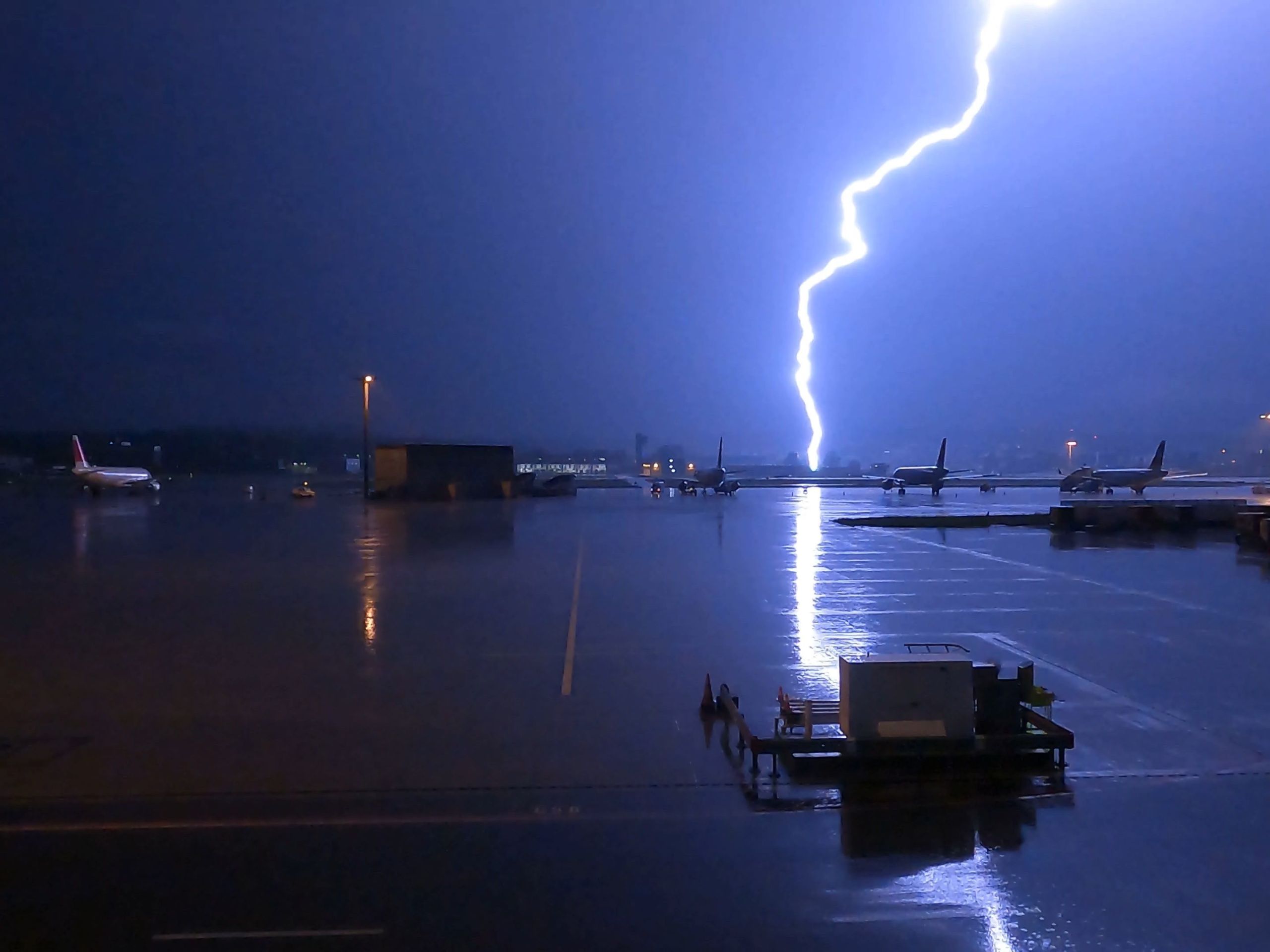 Gewitter können am Flughafen zu einem Handling- und Betankungsstopp führen und den Betrieb vorübergehend unterbrechen. Was passiert dann?