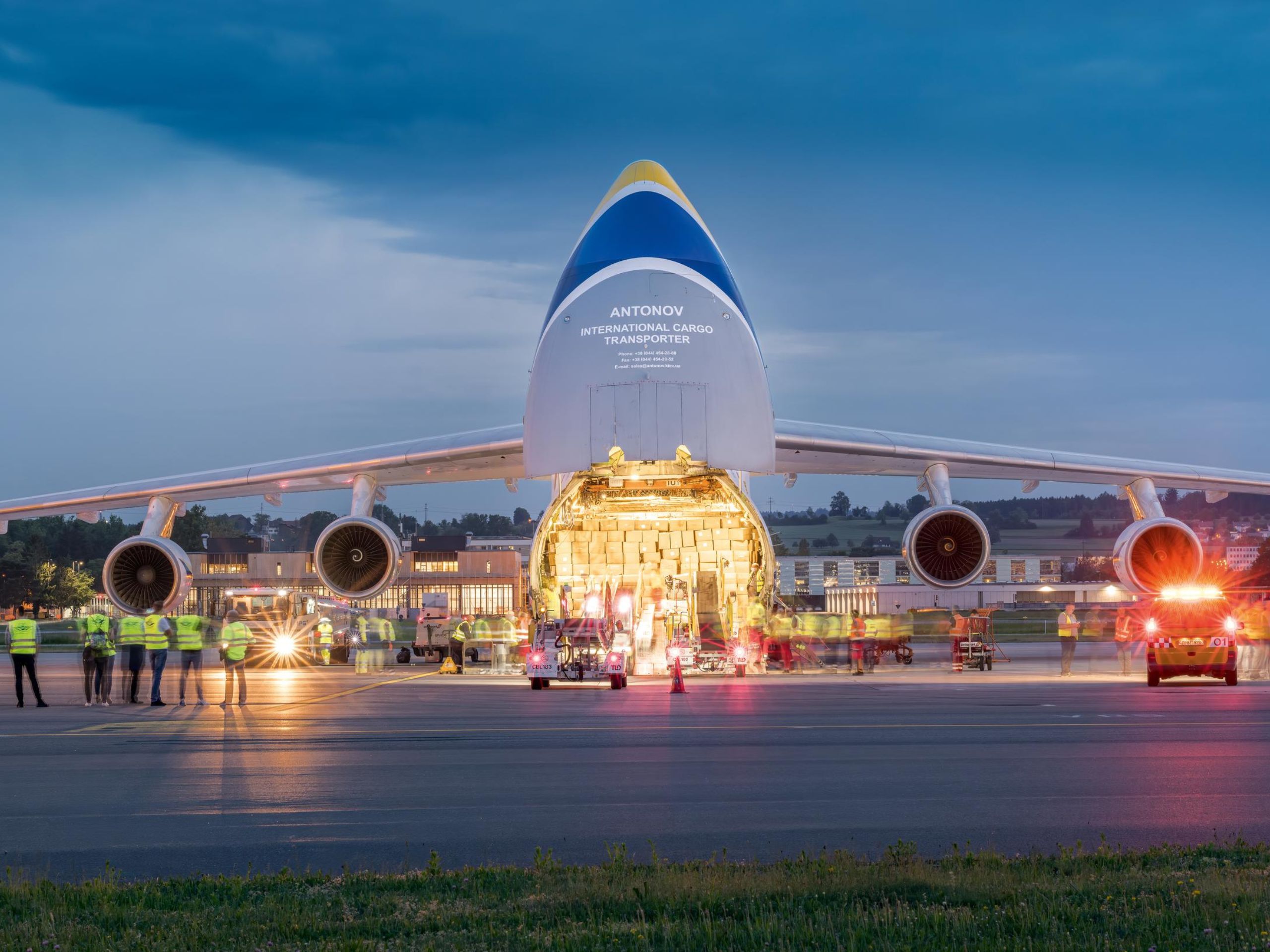 Bild: Der Riesenfrachter Antonov An-124 bringt zu Beginn der Covid-19 Pandemie Tonnen von Schutzmaterial aus China.