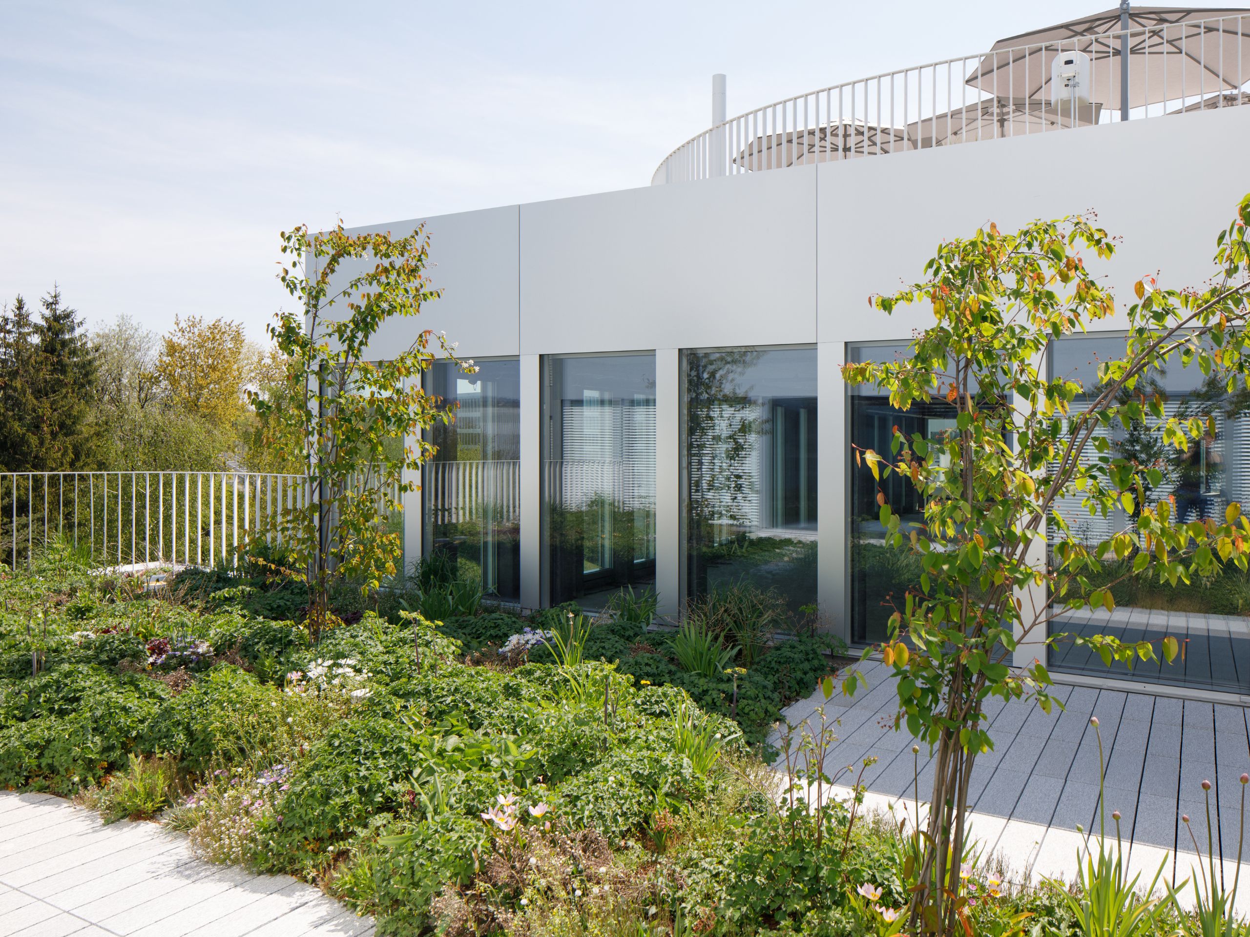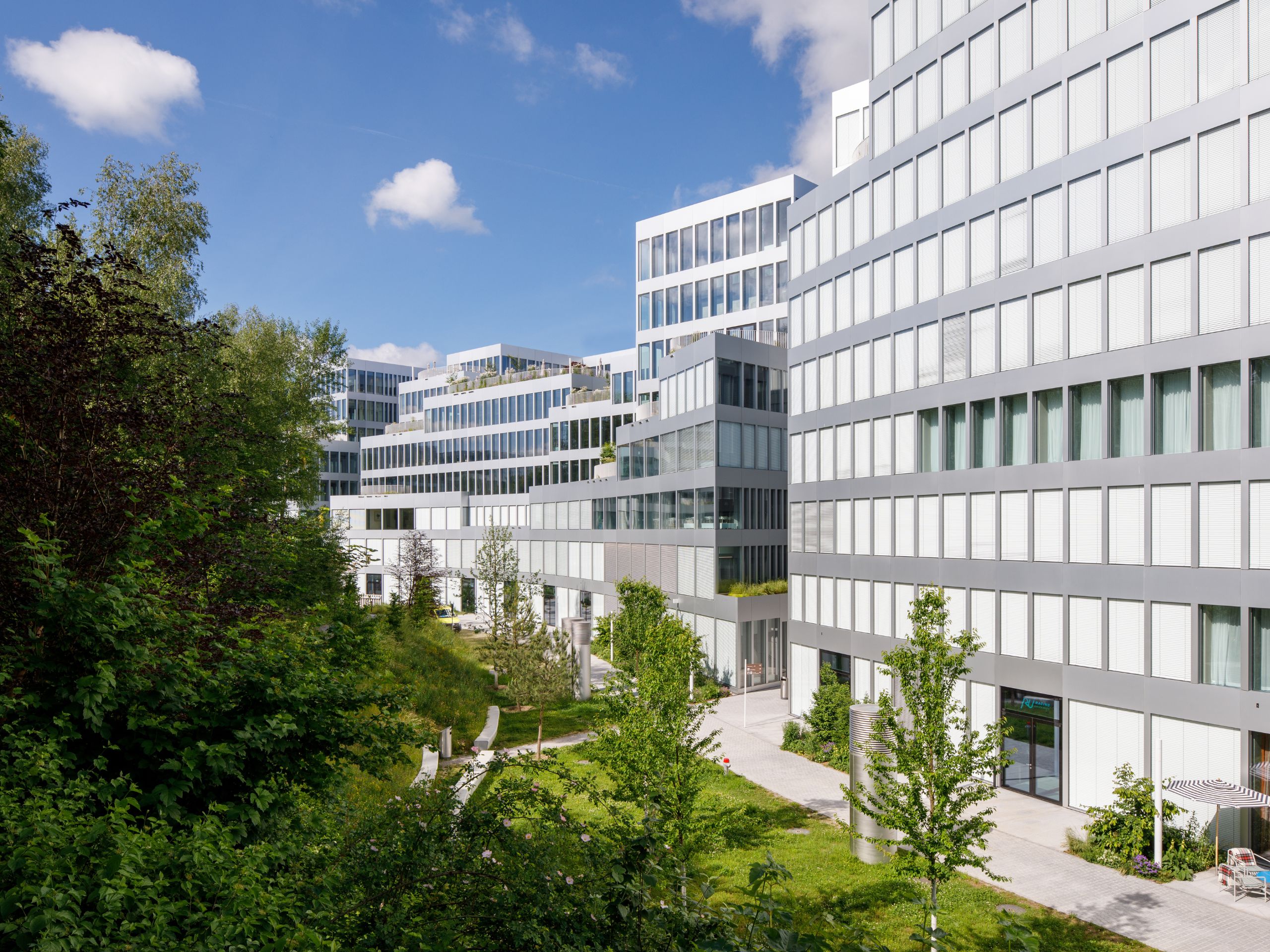 Es ist ein beeindruckender Gebäudekomplex mit sechs Hochbauten auf neun bis zehn Stockwerken und einer Fläche von insgesamt 180’000 Quadratmetern. Diesen Dimensionen zum Trotz fügt sich der Circle elegant und mit erstaunlicher Leichtigkeit in seine Umgebung ein. Im Innern des Gebäudekomplexes wähnt man sich in den urbanen Gassen einer modernen Grossstadt. Hat man sie passiert, stehen die Besucher:innen überraschend am Rande einer 80’000 Quadratmeter grossen Grünfläche: dem Park im Circle.