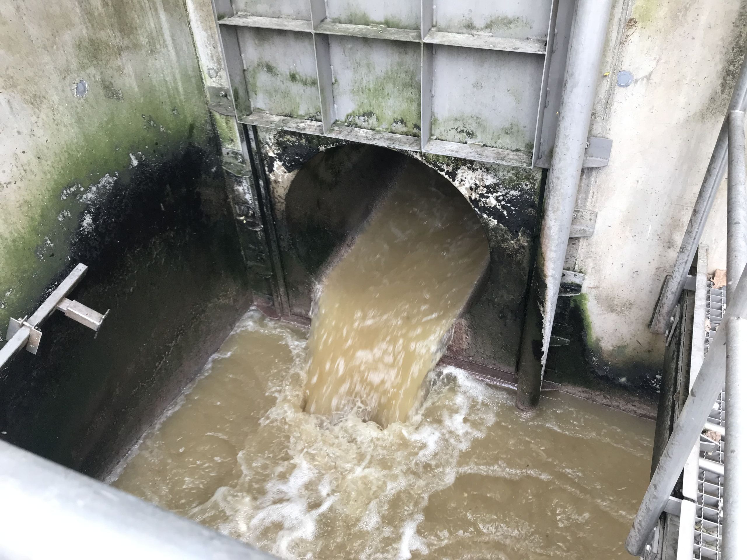Die Abwassereinleitung der Stadt Kloten in die ARA Kloten Opfikon. Auch das Schmutzwasser vom Flughafen kommt hier an.