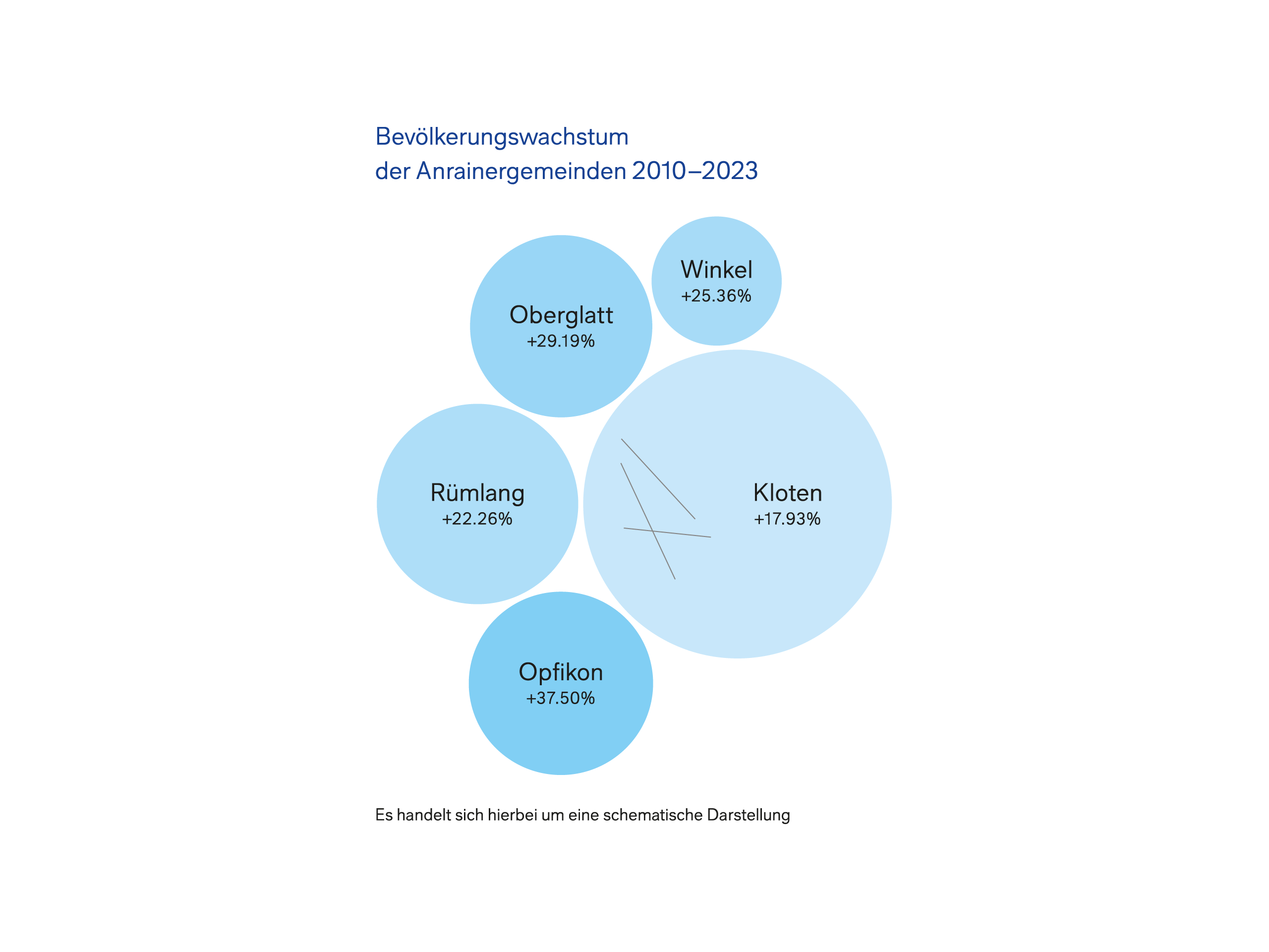 Ein Blick auf das Bevölkerungswachstum in der Flughafenregion offenbart, dass dieses während der letzten 10 Jahre deutlich zugenommen hat. Es war somit fast doppelt so hoch, wie der durchschnittliche Anstieg der Bevölkerung im Kanton Zürich (vgl. Grafik Bevölkerungswachstum). Eine exzellente Verkehrsanbindung, ein vielfältiges Dienstleistungsangebot, Arbeitsplätze und ein wertvolles Naherholungsgebiet machen die Flughafenregion attraktiv. Die Anwohnerschaft ist von Fluglärm betroffen, wobei die Lärmimmissionen über die letzten zwei Jahrzehnte immer weiter abgenommen haben. Das ist teils darauf zurückzuführen, dass Grossraumflugzeuge immer leiser werden. Jede Flugzeuggeneration reduziert die Lärmemissionen signifikant. Zudem hat die Anzahl der Flugbewegungen das Niveau aus dem Jahr 2000 nicht mehr erreicht und bleibt weitestgehend stabil. Zur Erinnerung: In den letzten 20 Jahren wurden die Betriebszeiten um 2 Stunden reduziert. Damit haben die Flugbewegungen in den sensiblen Nachtstunden zwischen 23:00 Uhr und 6:00 Uhr deutlich abgenommen.