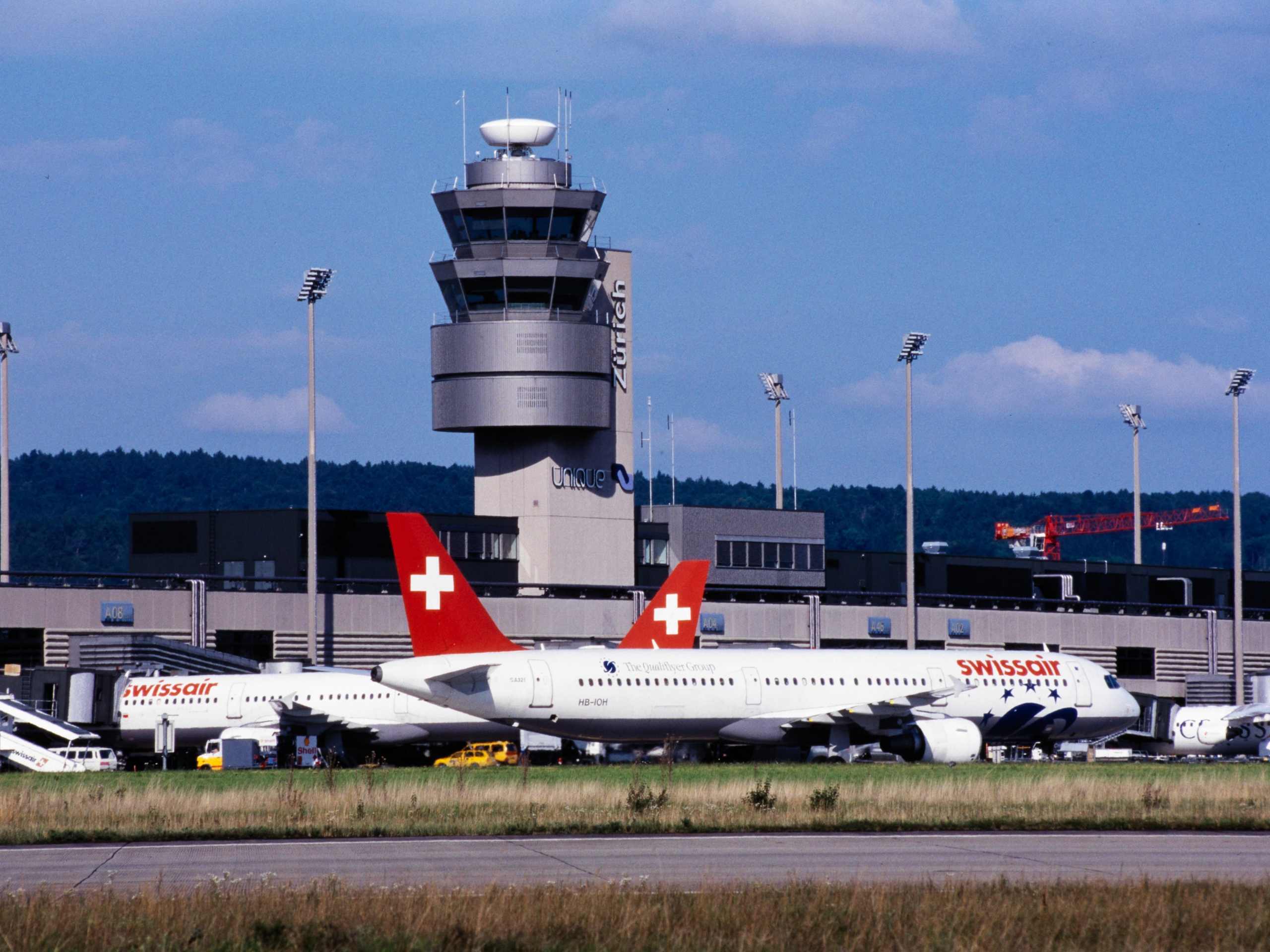 "Unique" als Logo am Kontrollturm der damals neuen Flughafen Zürich AG