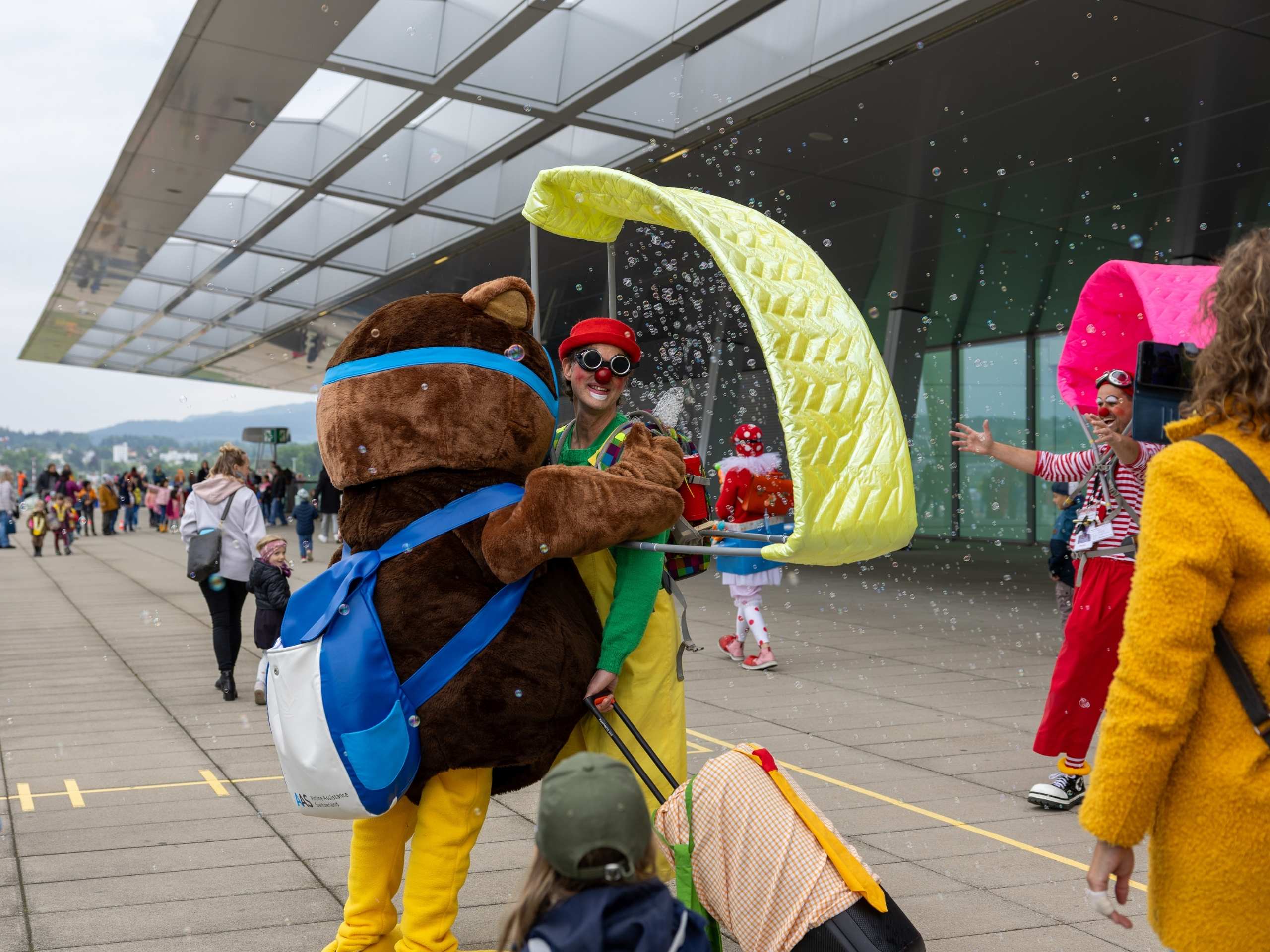 Zu den beliebtesten Veranstaltungen für Familien am Flughafen Zürich zählen die Maskottchen Days, die jeweils im Frühling und Herbst auf der Zuschauerterrasse B stattfinden. An diesen Tagen können Kinder Rolli und weitere Maskottchen von Flughafenpartnern wie SWISS, Edelweiss Air und AAS Switzerland persönlich treffen. Der Anlass zeigt auf spielerische Weise, wie viele verschiedene Firmen am Flughafen zusammenarbeiten, damit der Betrieb reibungslos funktioniert. Die Maskottchen, darunter ein Murmeltier, eine Vogel-Pilotin, eine Blume oder eine Eule, bewegen sich frei auf der Zuschauerterrasse, begrüssen die Kinder, lassen sich fotografieren und sorgen für viele unvergessliche Momente. Für viele kleine Besucherinnen und Besucher ist es ein besonderes Erlebnis, ihrem Lieblingsmaskottchen ganz nah zu kommen. Ergänzt wird das Programm durch den Auftritt einer Clown-Gruppe, die mit viel Witz, Bewegung und kleinen Überraschungen für zusätzliche Unterhaltung sorgt.