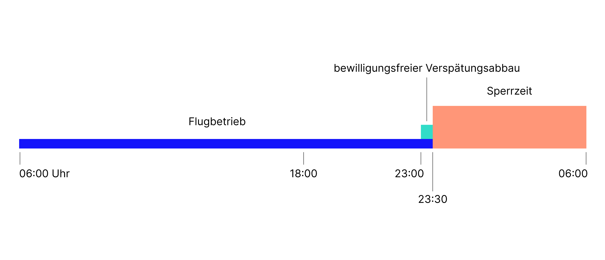 Die Betriebszeiten des Flughafens Zürich liegen zwischen 06:00 und 23:30 Uhr. Die letzte halbe Stunde (23:00–23:30) ist für den Verspätungsabbau reserviert. Während der Sperrzeit benötigen alle Flugzeuge eine Ausnahmebewilligung, um am Flughafen Zürich starten oder landen zu dürfen.