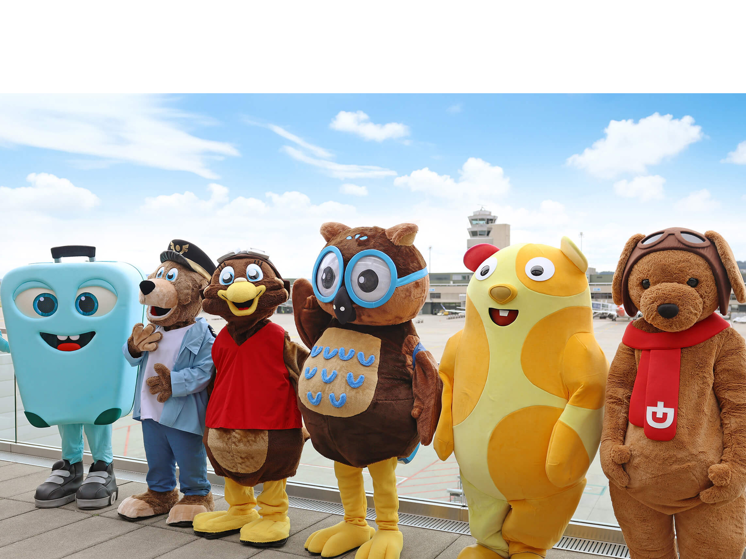 Strahlende Gesichter und leuchtende Kinderaugen: Maskottchen Rolli Rollkoffer und seine Flughafenfreunde die Zuschauerterrasse B von 14 bis 16 Uhr. Bernie & Lexi von SWISS, Giancarlo und Eli von Edelweiss und unser Rolli Rollkoffer freuen sich, am Maskottchen Day zahlreichen Kids und ihren Familien Hallo zu sagen und gemeinsam Fotos zu machen. Zudem wird die Clown-Truppe Guarda von 14.30 bis 16.00 Uhr eine kurze Zwischenlandung auf die Zuschauerterrasse machen. Die Schmunzel-Künstler werden viele lustige Ideen im Reisegepäck mit dabeihaben.