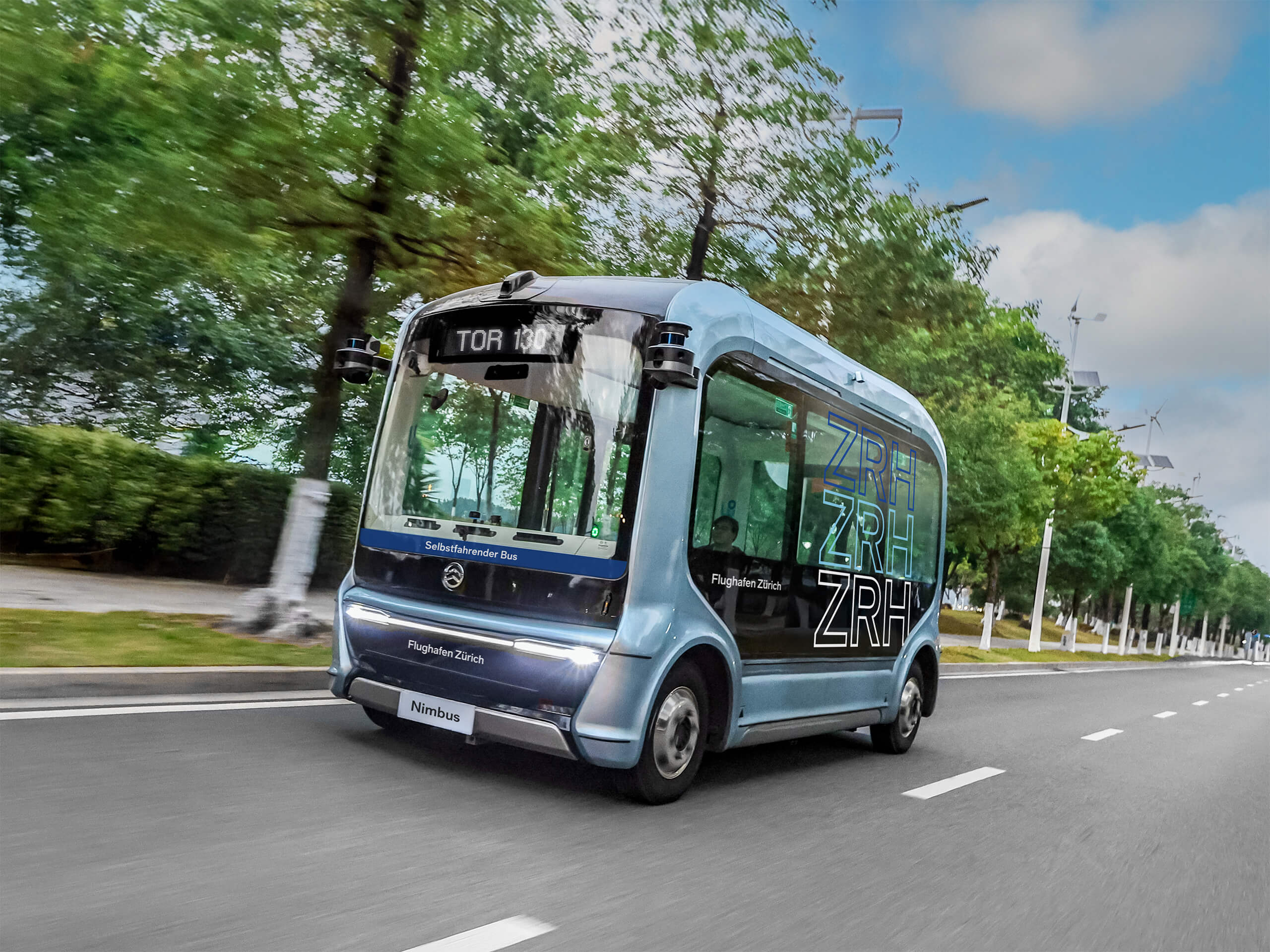 Die beiden selbstfahrenden Shuttlebusse (namens Nimbus & Stratus) für bis zu neun Personen sollen gemäss aktueller Planung in den nächsten Monaten den Betrieb aufnehmen. Sie ergänzen den bestehenden, luftseitigen Shuttle-Service für Mitarbeitende der am Flughafen tätigen Unternehmen. Die Route führt luftseitig vom Mitarbeitendenzugang beim Tor 101 bis zum Werkhof beim Tor 130 mit mehreren Stopps und ohne Rollwege zu kreuzen. Diese Strecke ist durch ihre klare Trennung vom Flugbetrieb ideal für den ersten Einsatz automatisierter Fahrzeuge und bietet optimale Testbedingungen. Ausserdem erleichtern die regelmässigen Fahrten den Mitarbeitenden Arbeitswege innerhalb des Flughafengeländes. In der Anfangsphase wird ein Sicherheitsfahrer an Bord sein, um das System zu überwachen. Je nach Erkenntnissen in dieser Phase werden in einem nächsten Schritt fernüberwachte Fahrten getestet – stets unter strenger Kontrolle eines Fernbetriebszentrums am Flughafen.