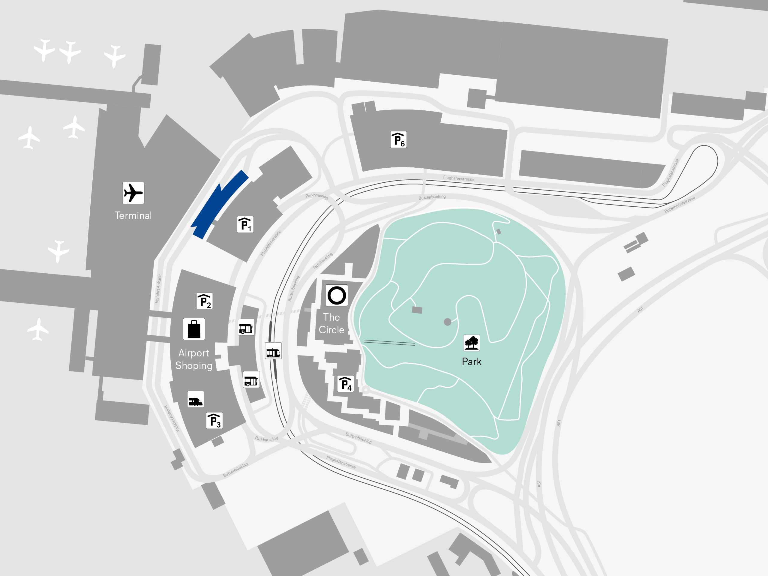 Prime Center 1 is located directly opposite the approach road to the terminal at Check-in 1.