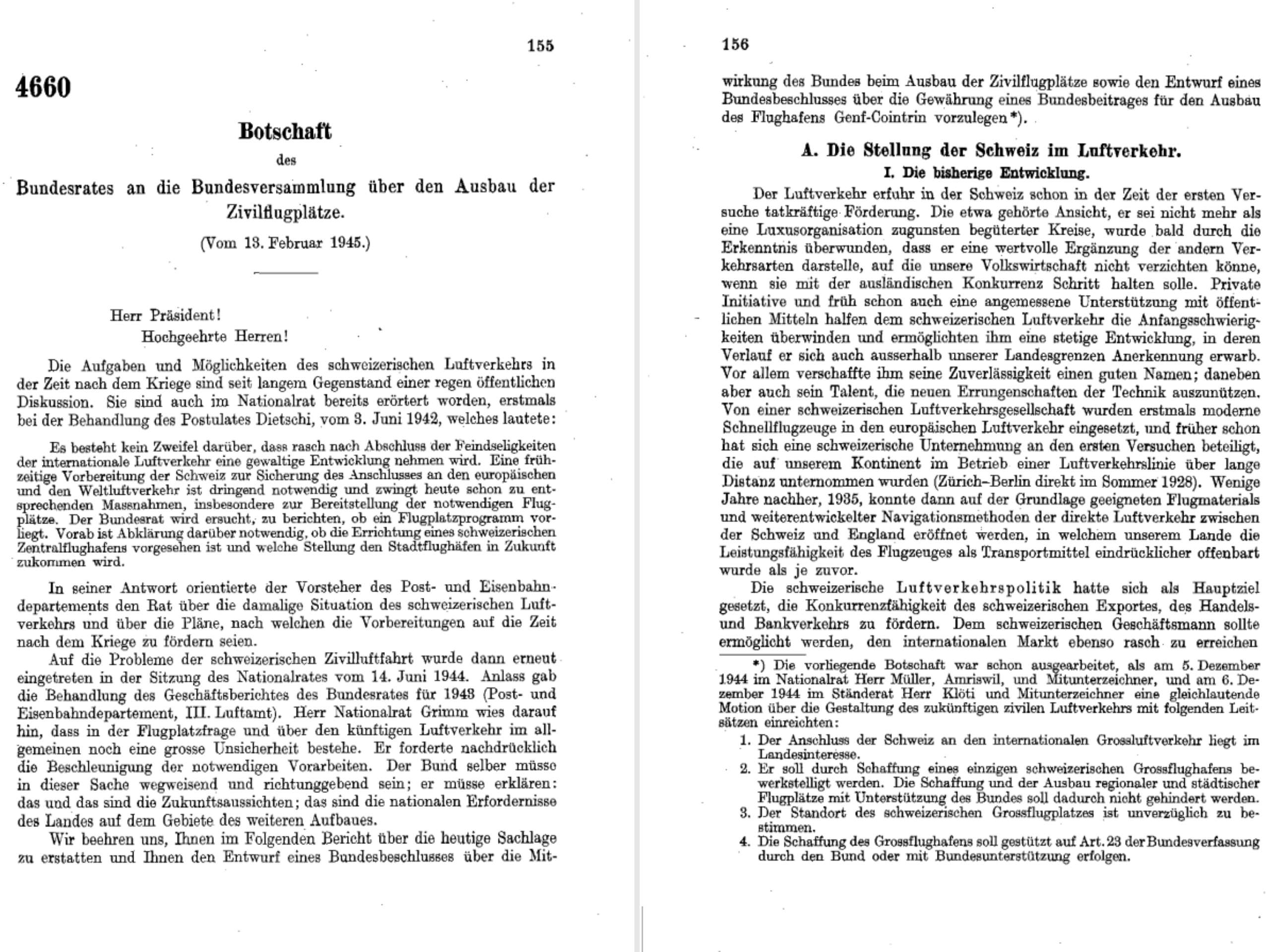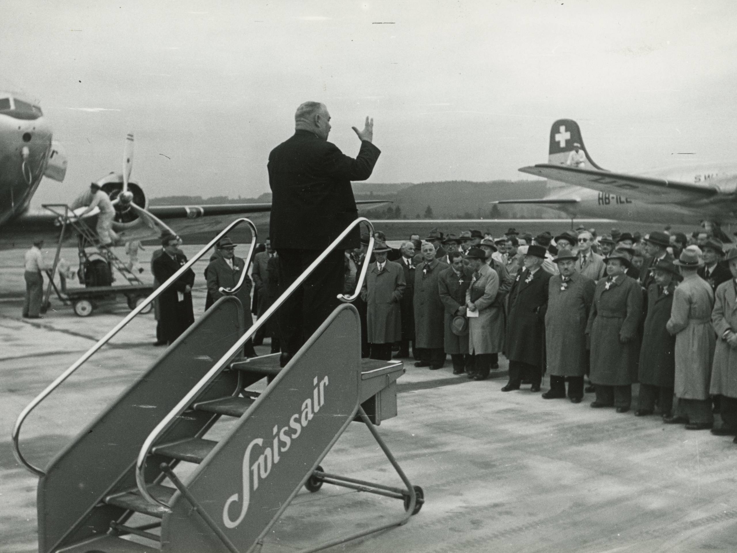 The federal decree on civil aerodromes designates Zurich as the location for an intercontinental airport. The federal government sells a 655-hectare segment of the military grounds to the Canton of Zurich for CHF 10 m.