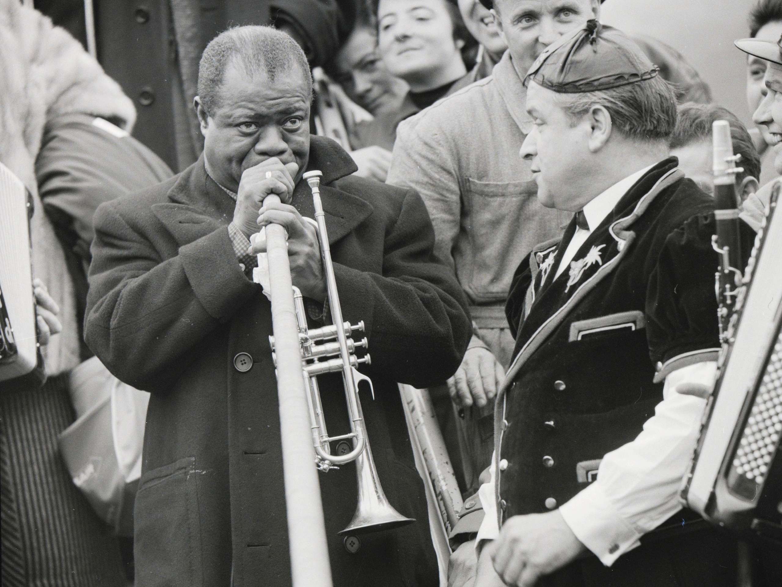 The King of Jazz is welcomed to Zurich with flowers and music. The 20th century icon joins in with Zurich jazz ensemble Tremble Kids, improvising on a borrowed Alpine horn.