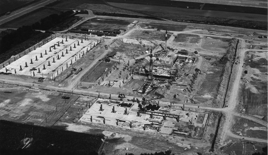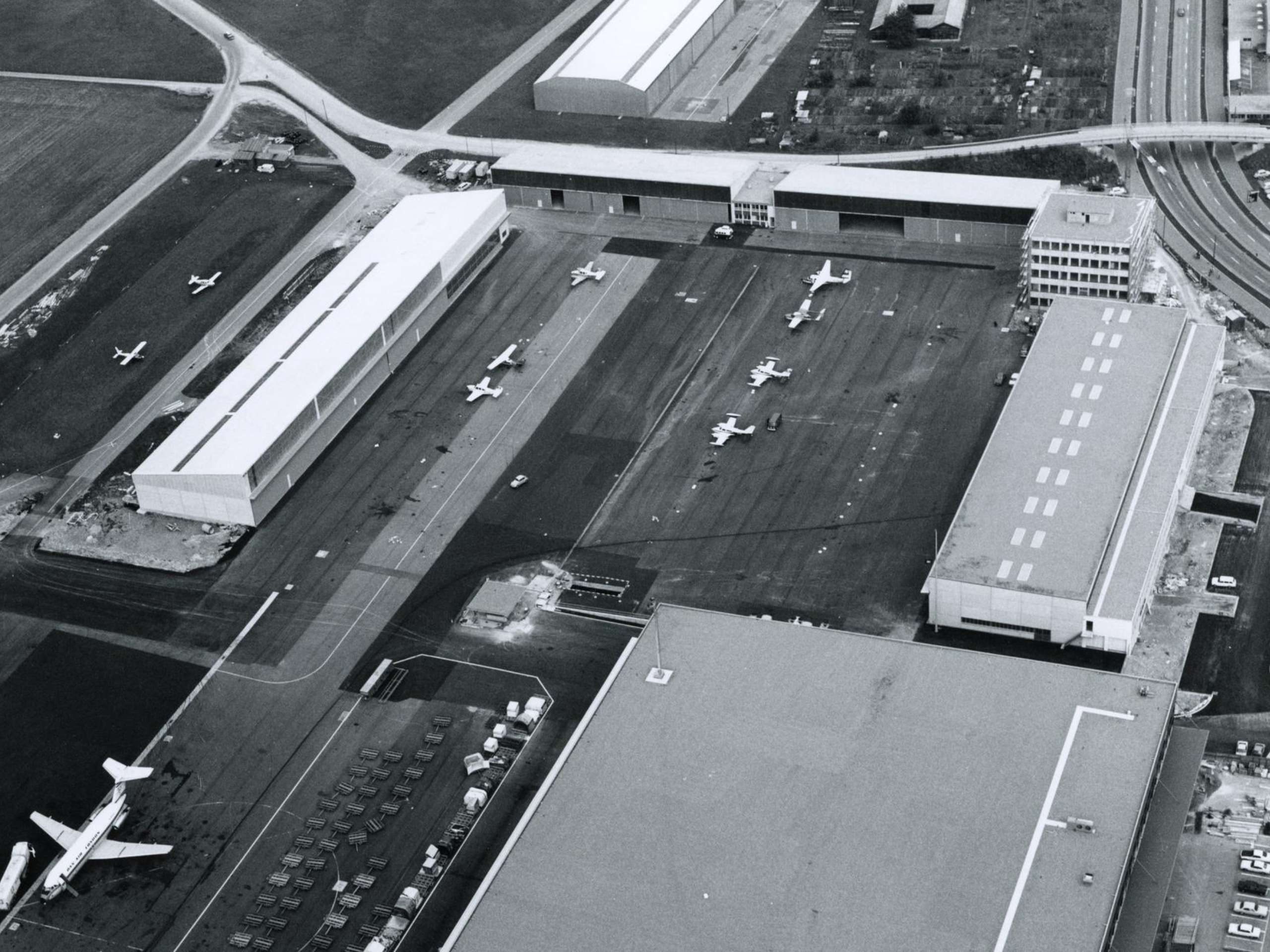 Swissair hangar 1 is constructed and put into operation. In addition, steel construction work is carried out for the vaulted hangar, which was built in 1949.