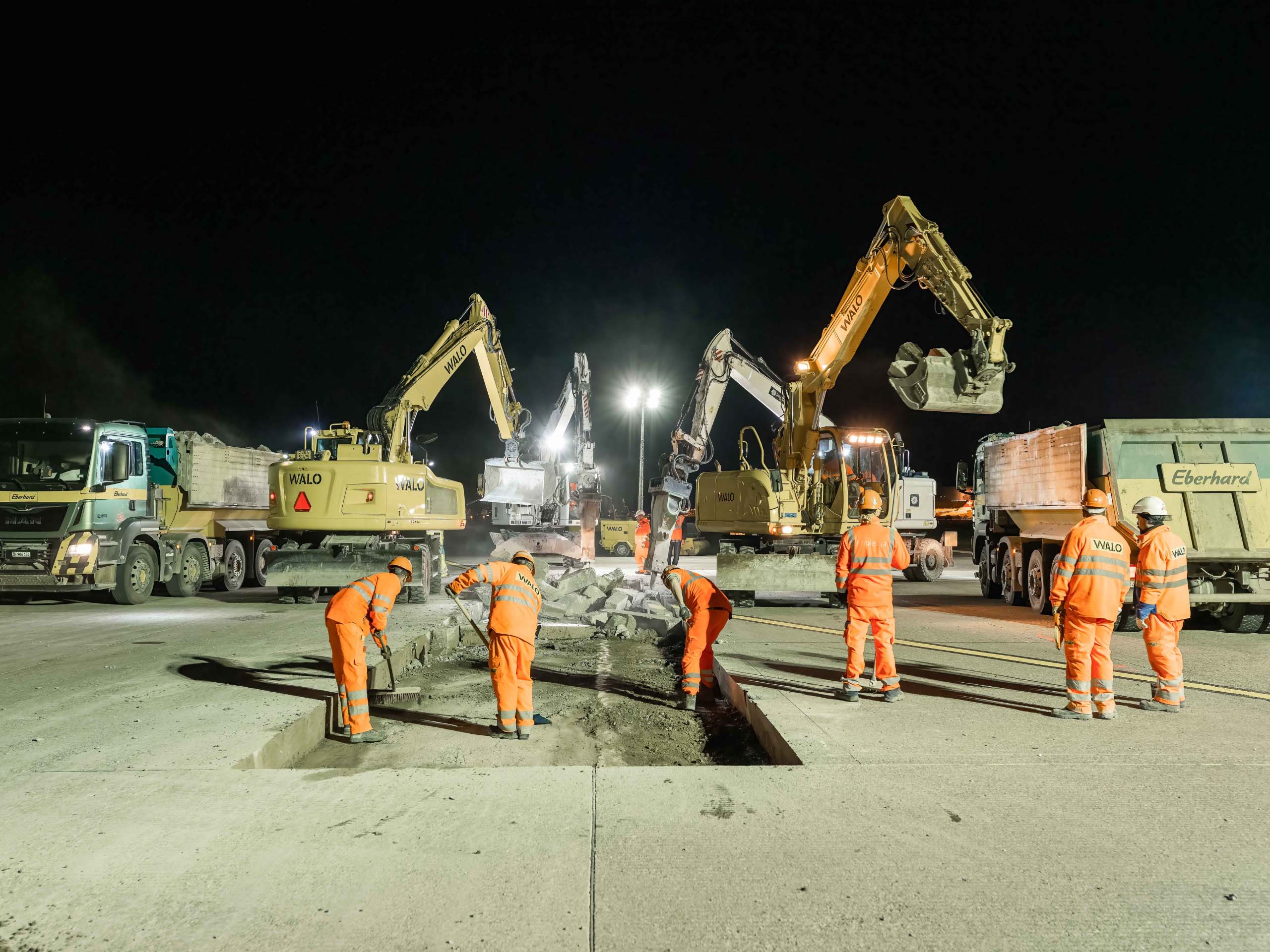 Up to 1'200 construction workers were deployed, digging out a million cubic metres of soil and using 1.23 million cubic metres of gravel from nearby Holberg.