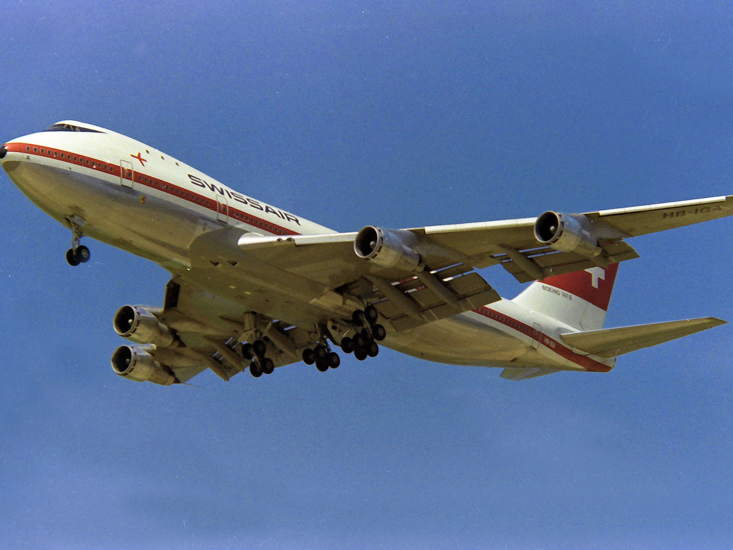 Douglas aircraft (DC-10-30) and the Swissair Boeing 747 dominate in the 1970s. The Boeing 747, also known as the jumbo jet, ushers in a new era of air travel: the age of wide-body aircraft.