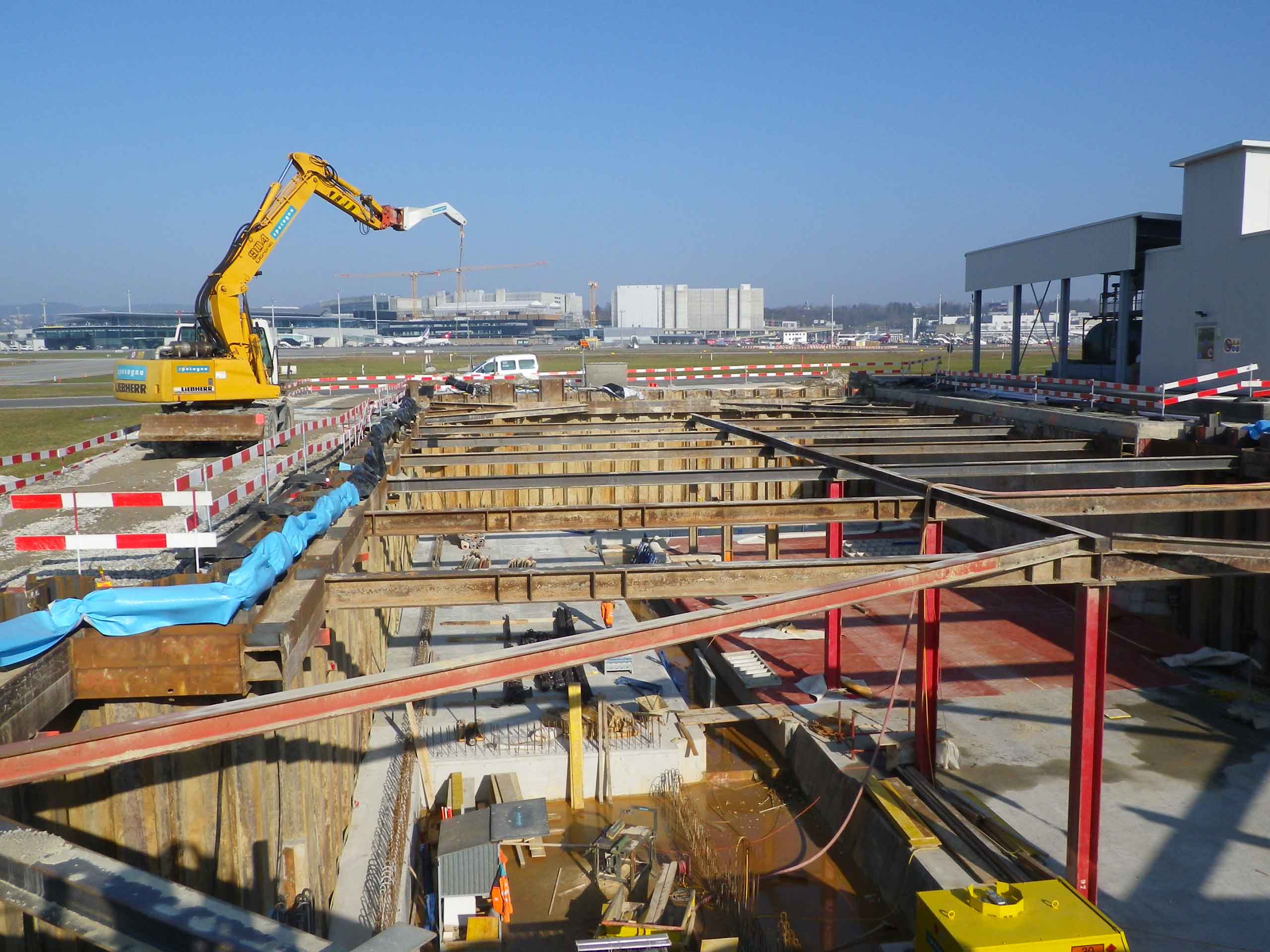 A 5-year pilot phase within the first stage successfully proved that the treatment concept works. The supervisory authority then issued an operating permit for a period of 15 years. Following a review of the Zurich Airport GEP (2005-2009), Zurich Airport Ltd. committed itself to implementing the second phase and extending the treatment infrastructure. The goal of this expansion was to increase the amount of de-icer runoff treated from 75% to 95%. This includes the entire apron to the south of runway 10/28 and also runway 10/28 as the main take-off runway. This required 4'500 m3 of underground storage tanks, 25 hectares of new spray irrigation areas and a new retention filter basin.