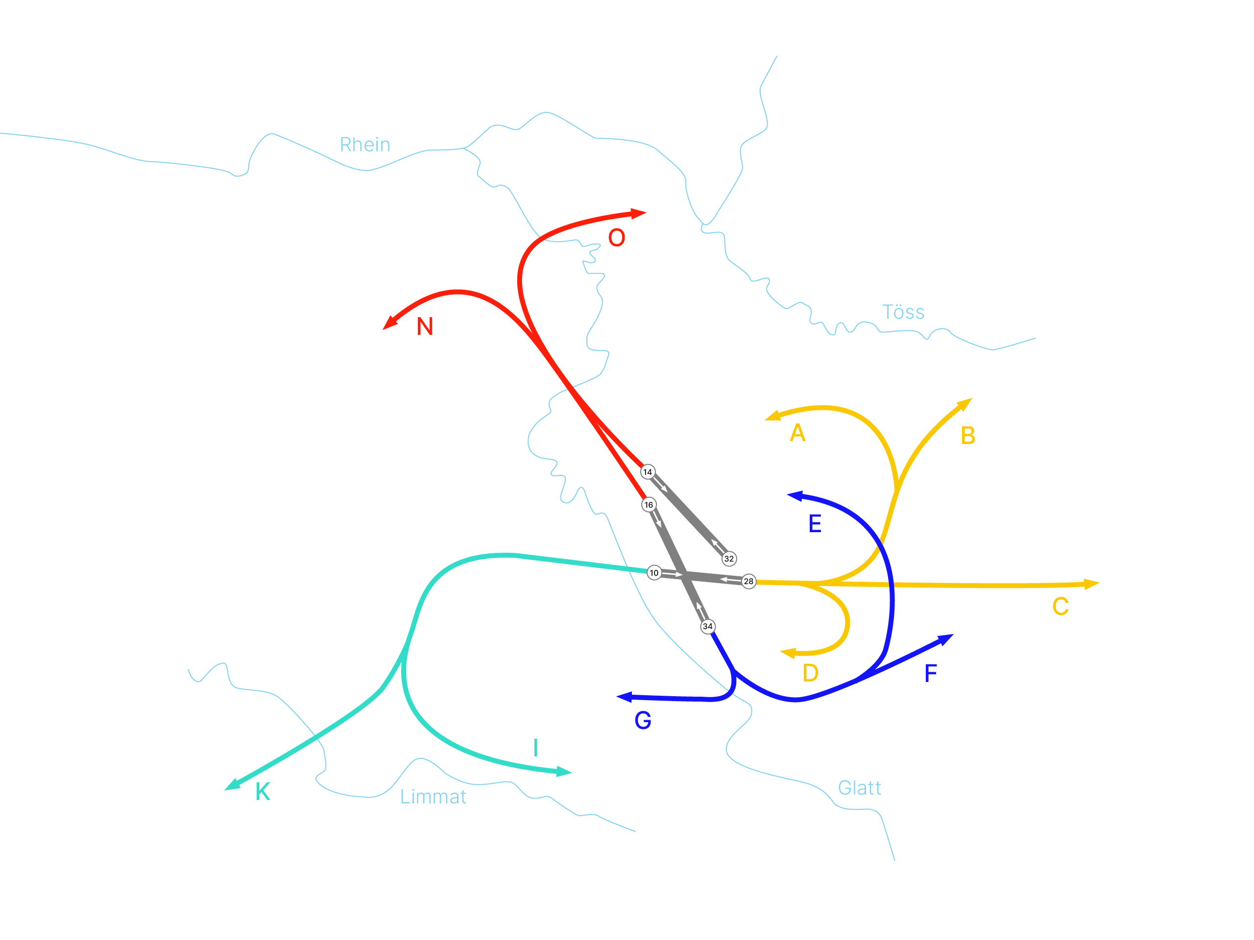 The operating concept at Zurich Airport is based on Zurich Airport's operating regulations, the German implementing regulation (DVO) and the prevailing weather conditions.