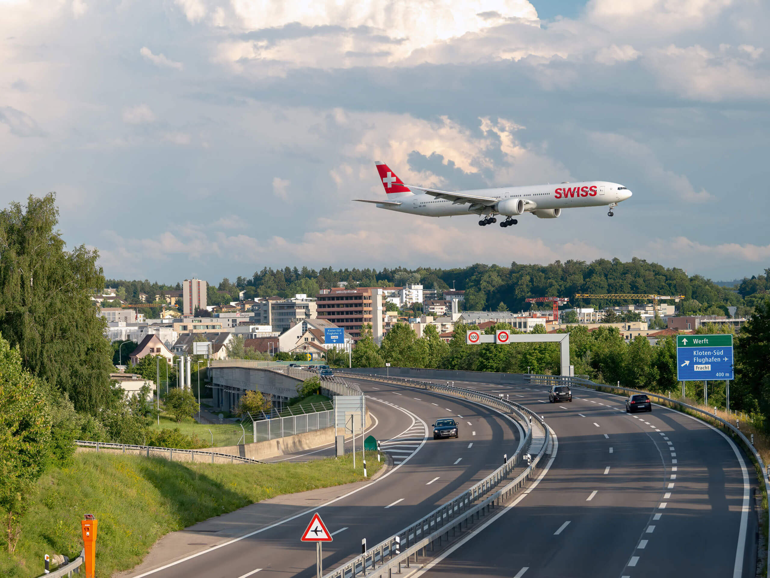 The aircraft noise exposure at Zurich Airport is calculated by EMPA and shown in noise exposure maps. The noise levels of all overflights are averaged over the whole year. The areas colored in red, yellow and green represent those areas in which the calculated aircraft noise exposure exceeds the limit values. However, aircraft noise can also be perceived outside of these colored areas. The legal terms, calculation rules and limit values are defined in the Noise Abatement Ordinance, see also the glossary.