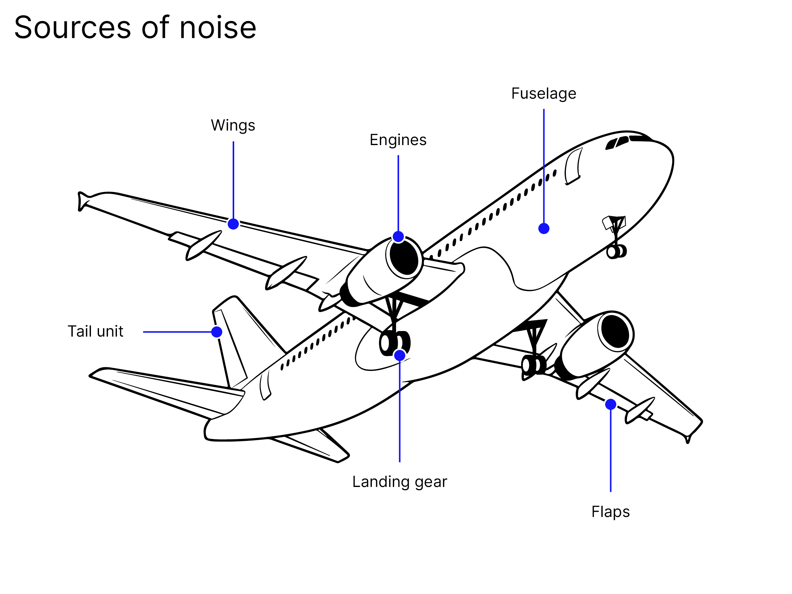 Aircraft engines are among the main noise sources during departure. Several types of noise are generated, for example: