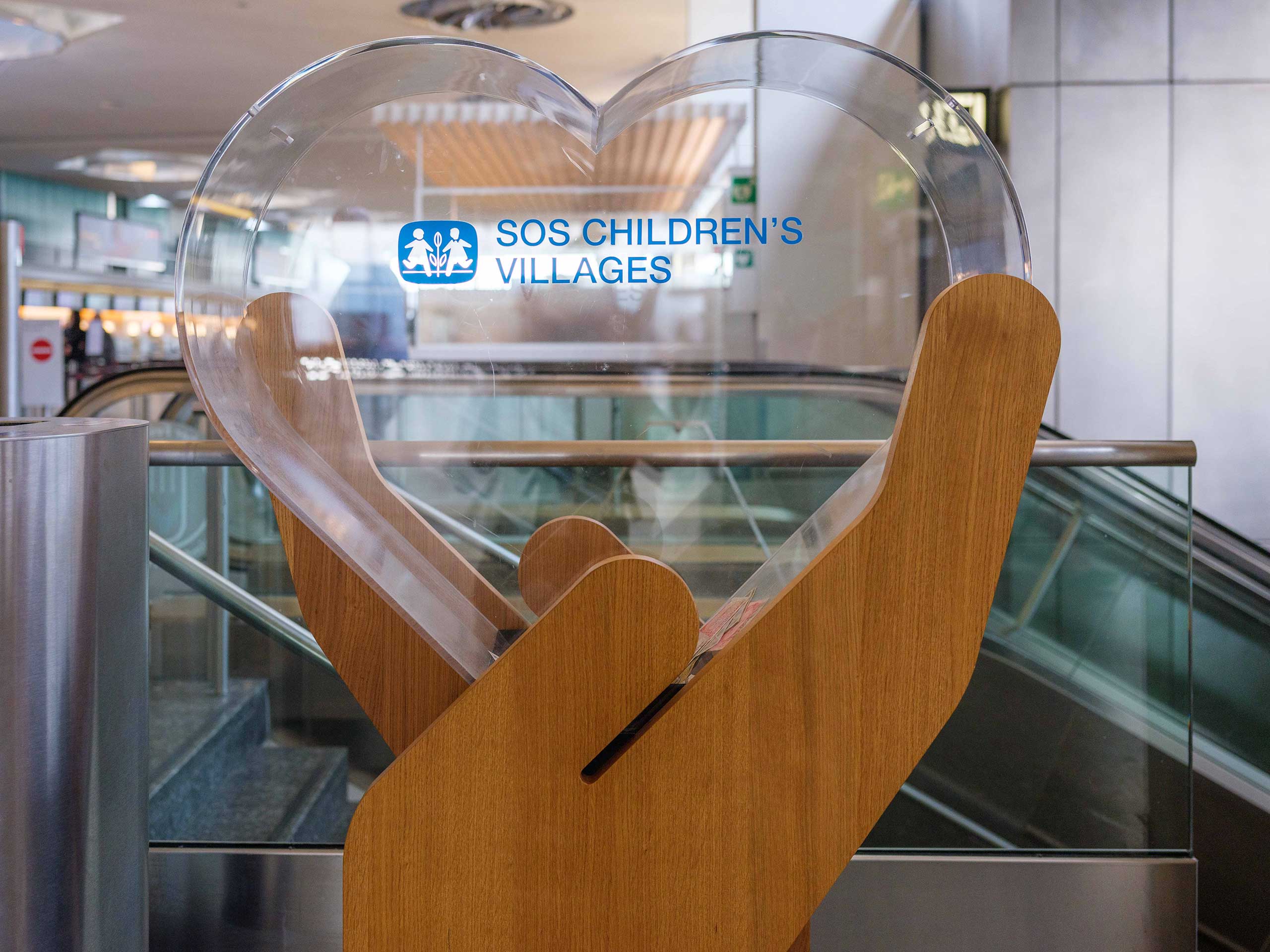 The heart-shaped donation boxes can be found at eleven locations at Zurich Airport: in check-in 1 and 2 (publicly accessible) and in all departure areas of docks A, B, D and E.