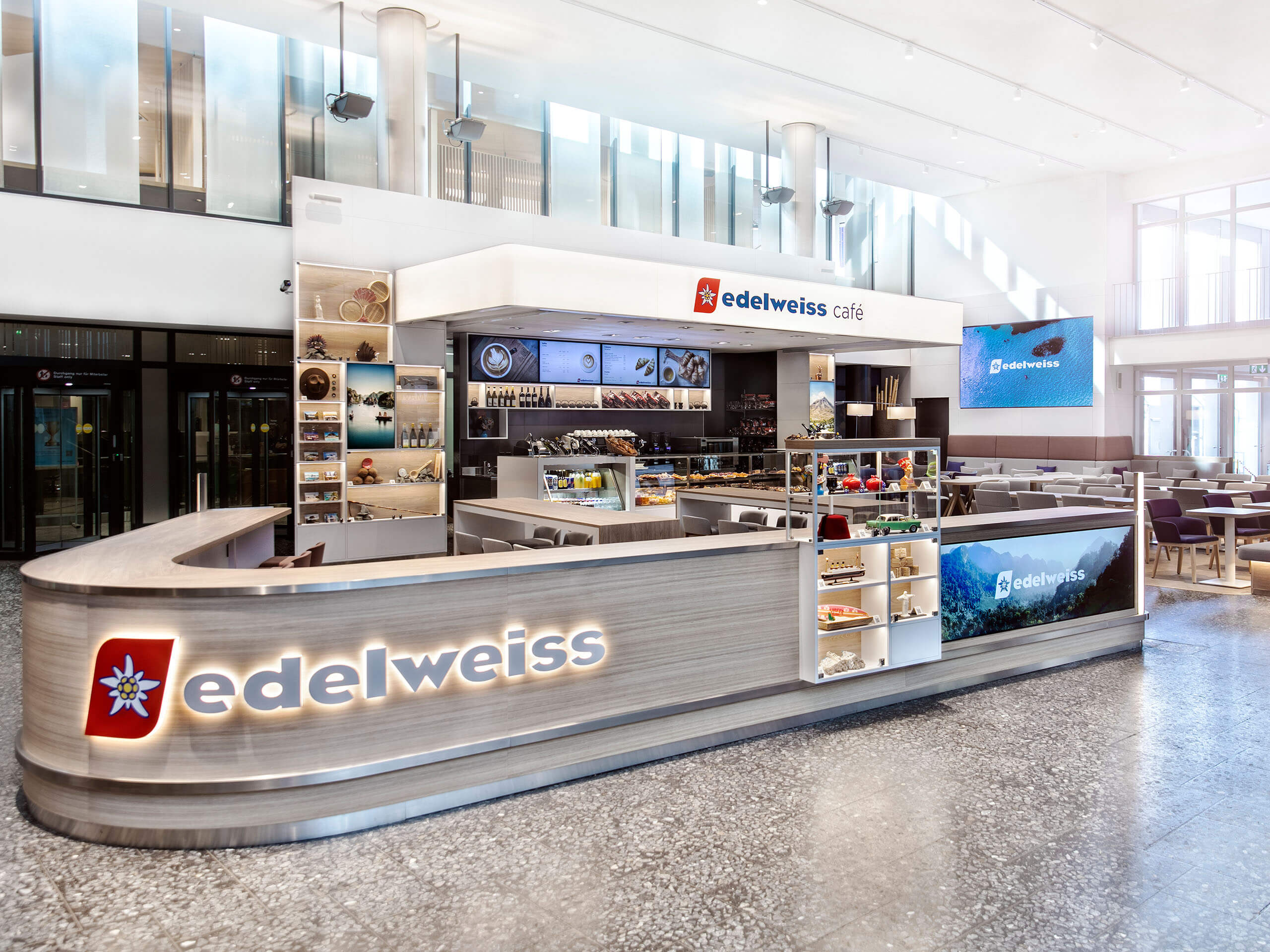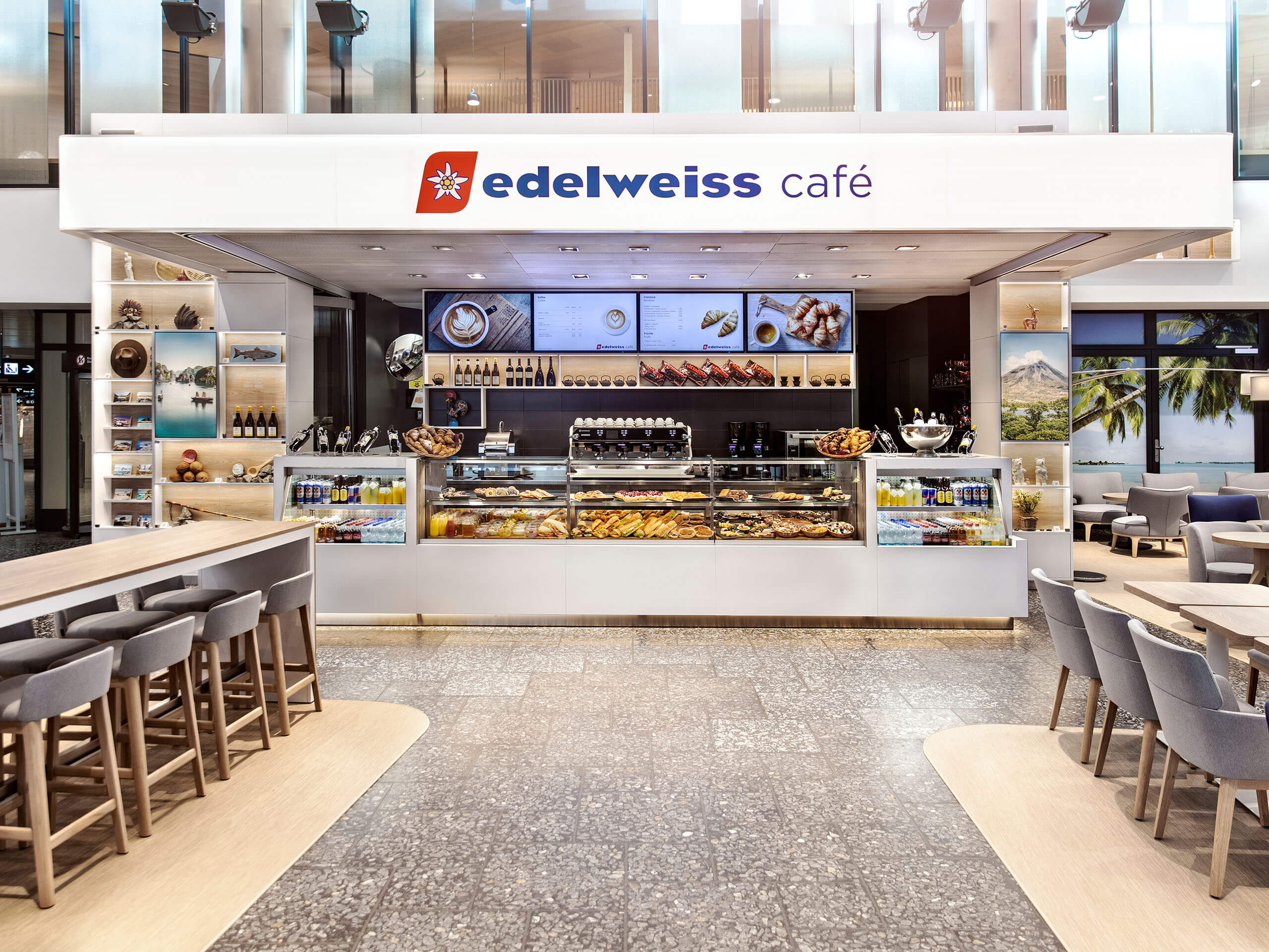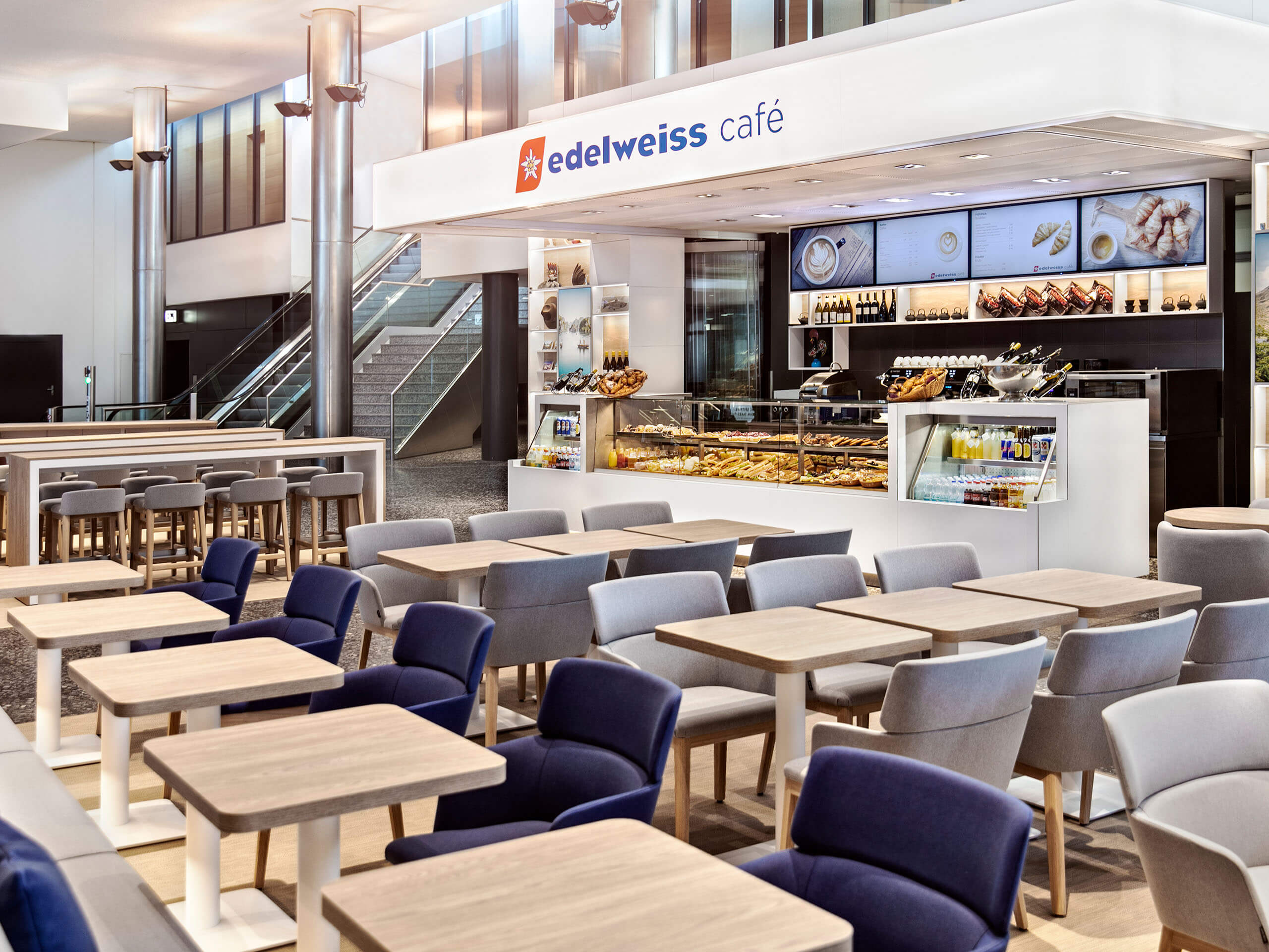 At the Edelweiss Bar you can enjoy delicious Italian coffee, crispy sandwiches or small snacks from morning to night. The informal atmosphere invites guests to unwind – right in the middle of the hustle and bustle of the airport.