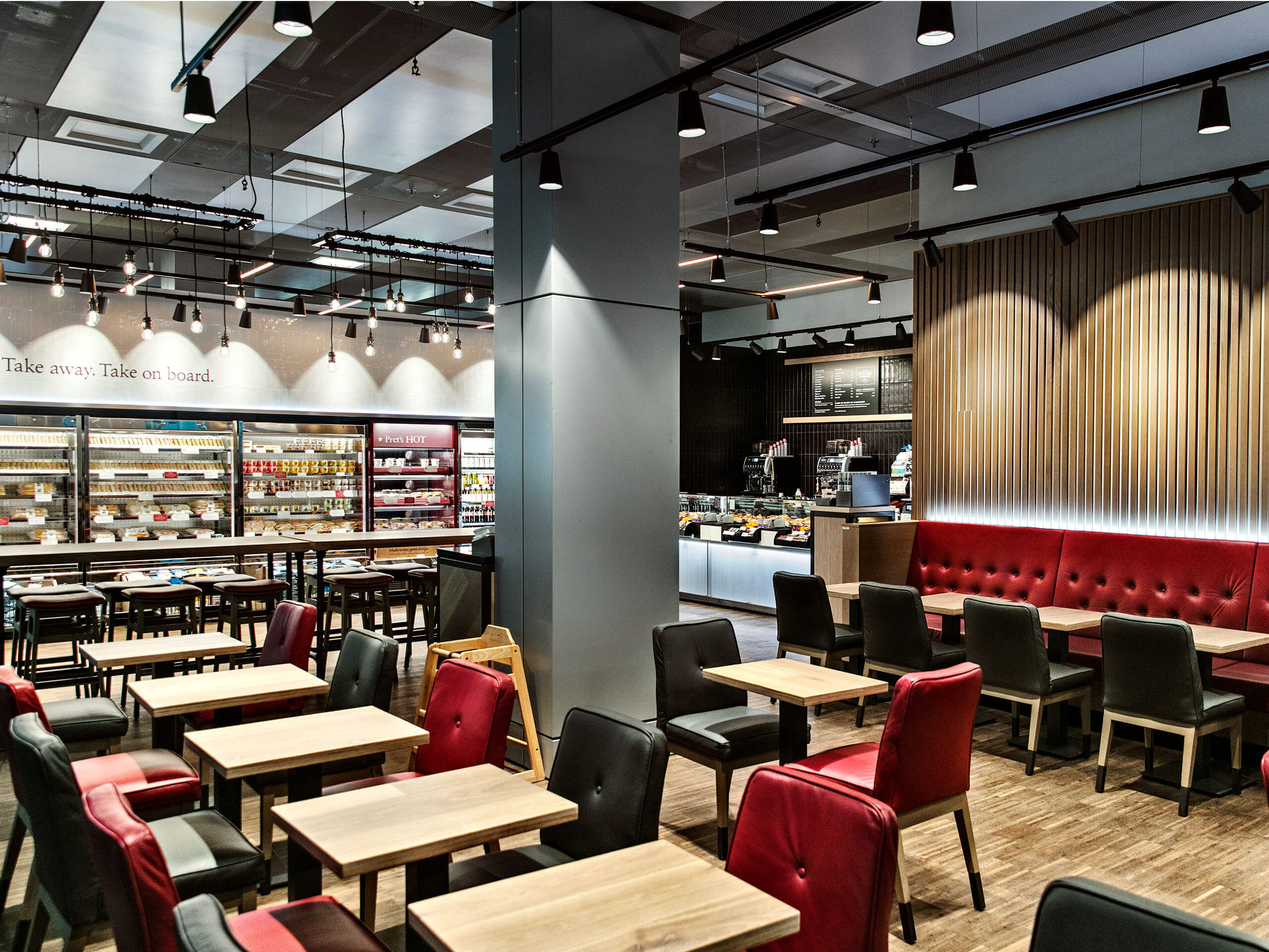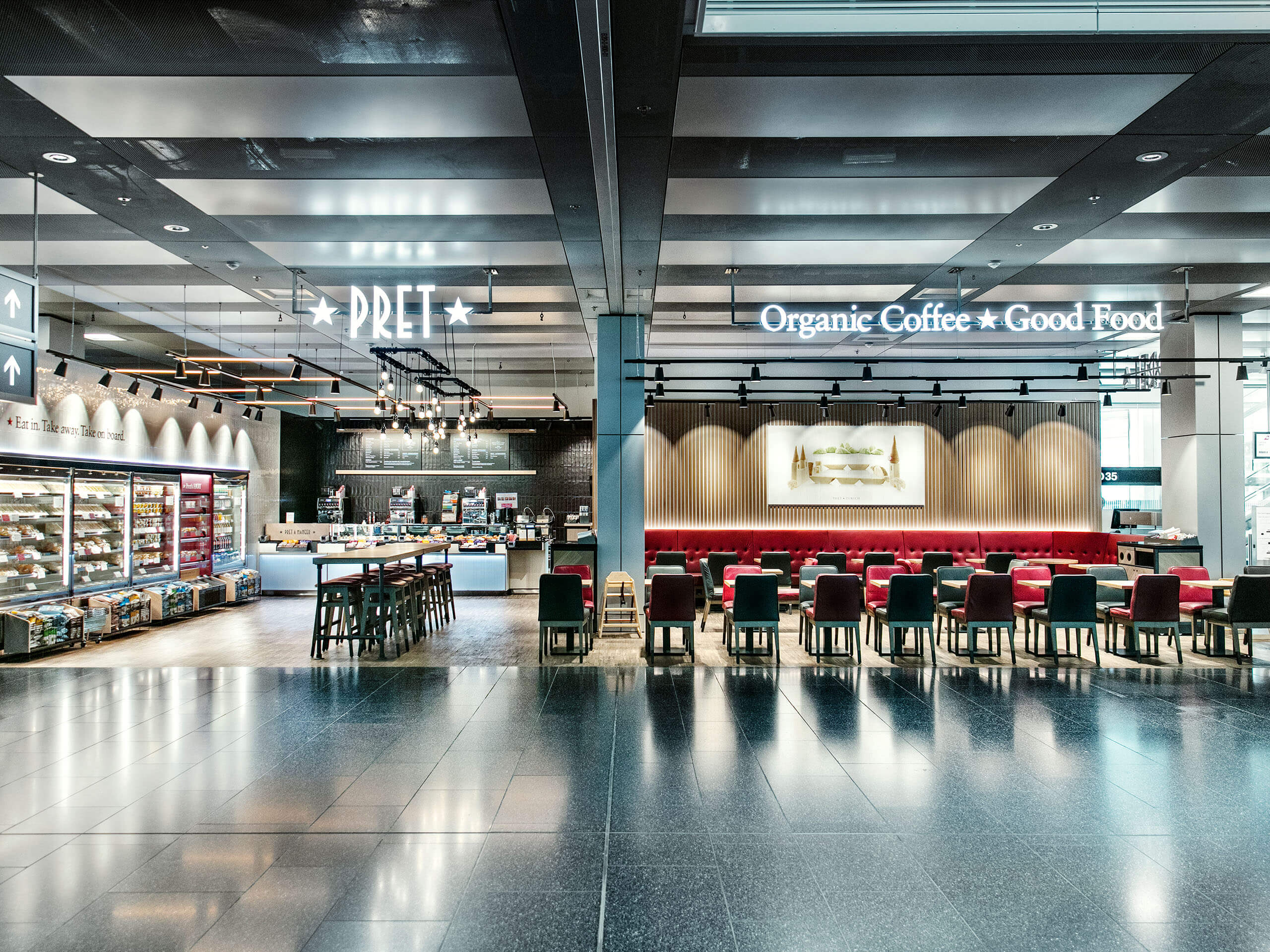 Fresh dishes every day made with choice ingredients – that’s what sets Pret A Manger apart. The international restaurant brand’s rich selection includes traditional sandwiches, wraps and vegan meals as well as hot and cold drinks to consume on the premises or take away.