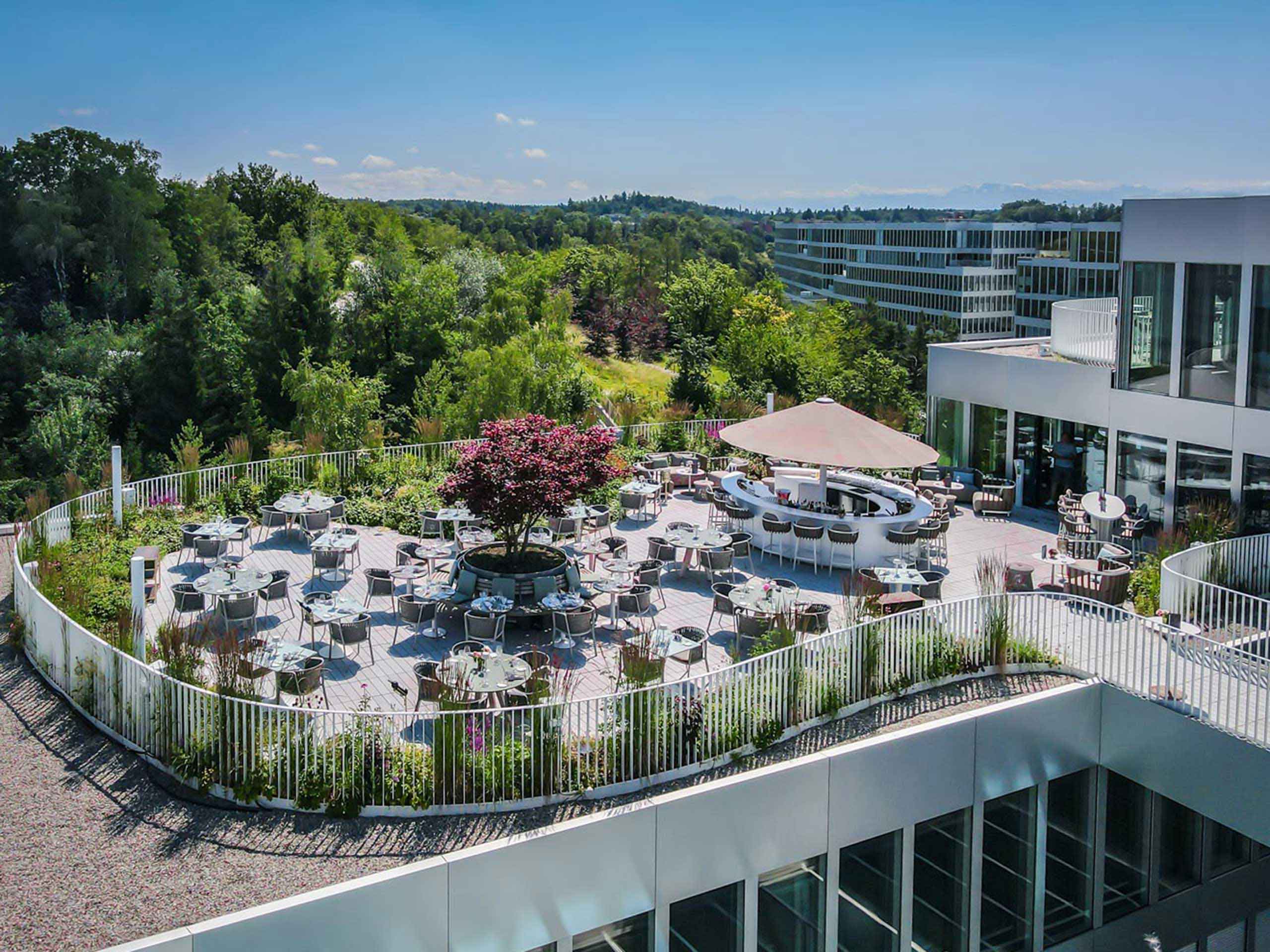 At Sablier, you can embark on a journey through the culinary diversity of France, paired with irresistible wines. The stylish restaurant and bar offer an unbeatable green view from Switzerland’s largest rooftop terrace.