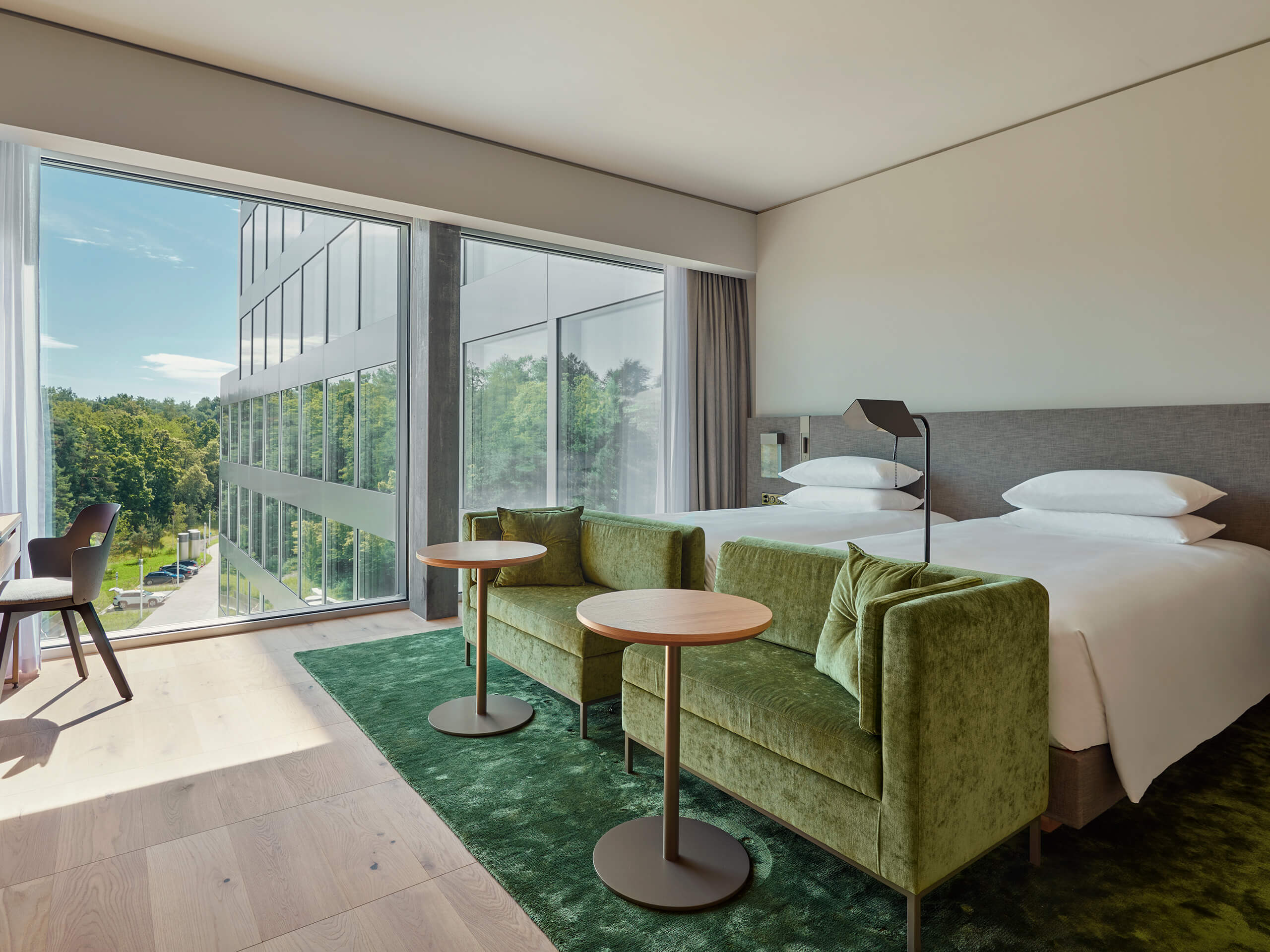 Located at the main square of The Circle, 255 rooms & suites await with floor-to-ceiling windows and direct access to The Circle Convention Center and the adjacent park.