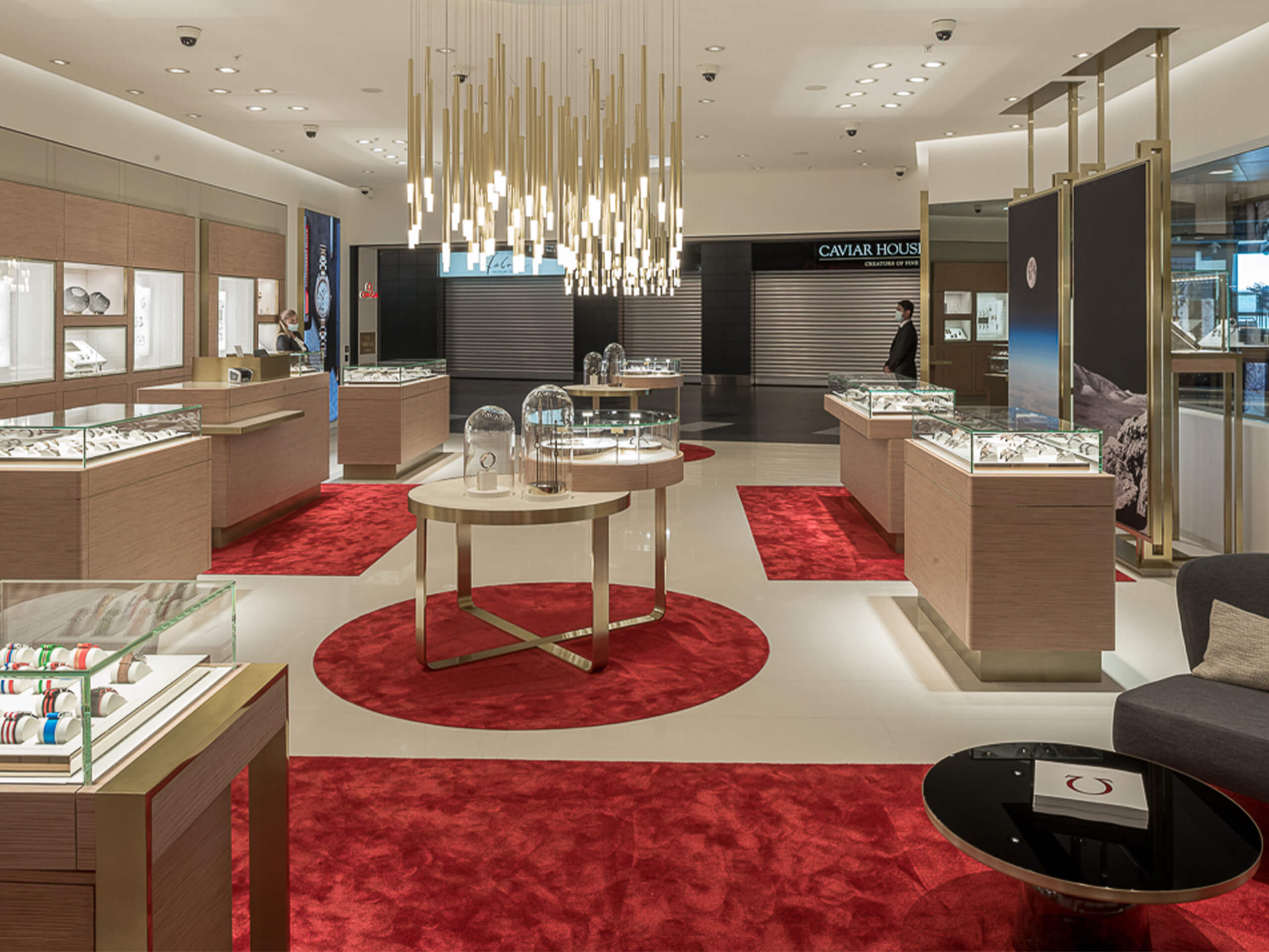 The boutique offers an elegant and luxurious environment inviting customers to enjoy all OMEGA collections: Constellation, Seamaster, Speedmaster and De Ville.