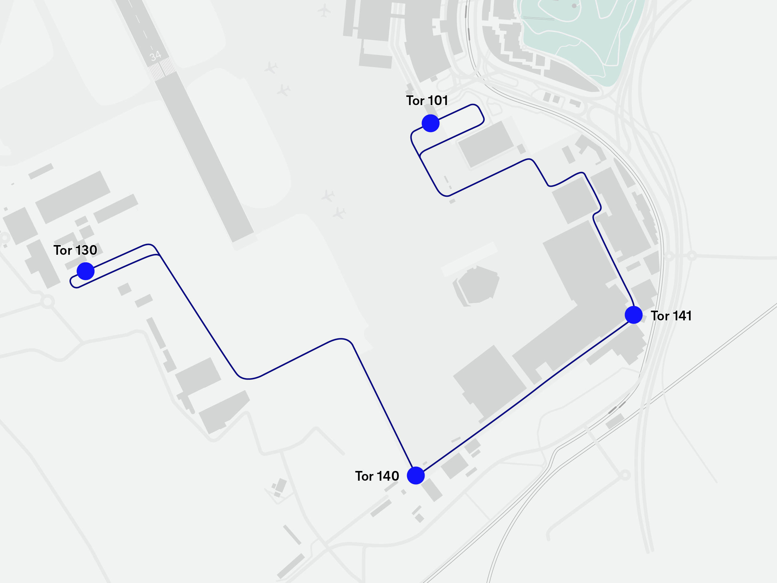 Board at Gate 101, 130, 140 or 141 – and off you go!