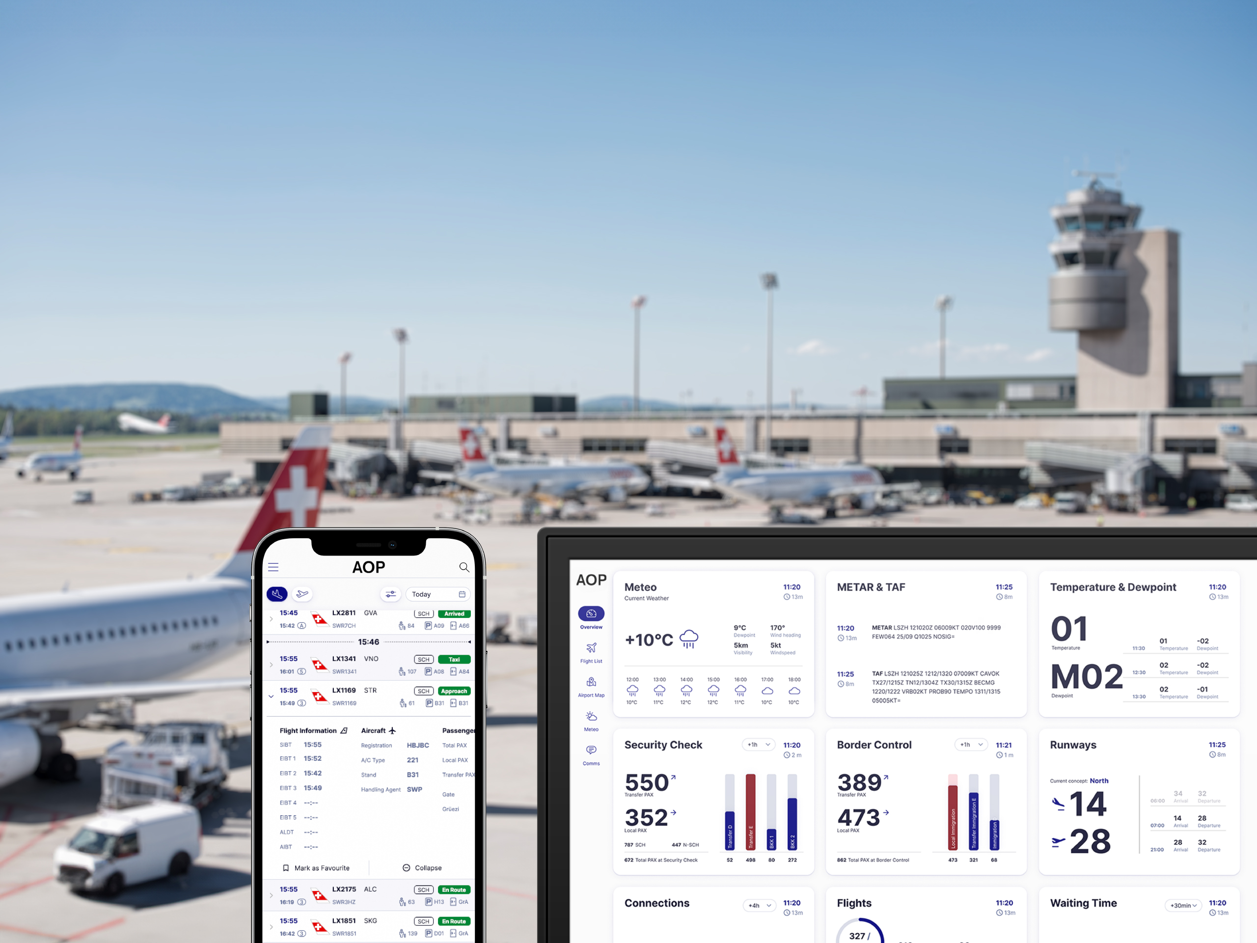 The AOP web application supports operational stakeholders at Zurich Airport.